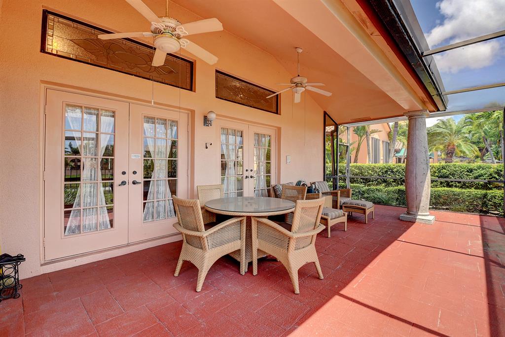 Lovely and Spacious Waterfront 2 bedroom/2 bath residence in very desirable Villa Flora in Boca Pointe. This lushly landscaped, well maintained and wrought-iron gated entryway ''original'' condition home is light & bright; has an open great room floor plan, with a wet bar, coral fireplace, built-in illuminated wall unit, and charming vintage leaded glass transom windows features; nice sized kitchen with an island and eat-in breakfast area, large master suite, and classic French doors leading out to a beautiful rear patio overlooking the peaceful lake and fountain. Roof 2016; Water Heater 2014; A/C 2012. This home awaits a discerning buyer's personal touches!