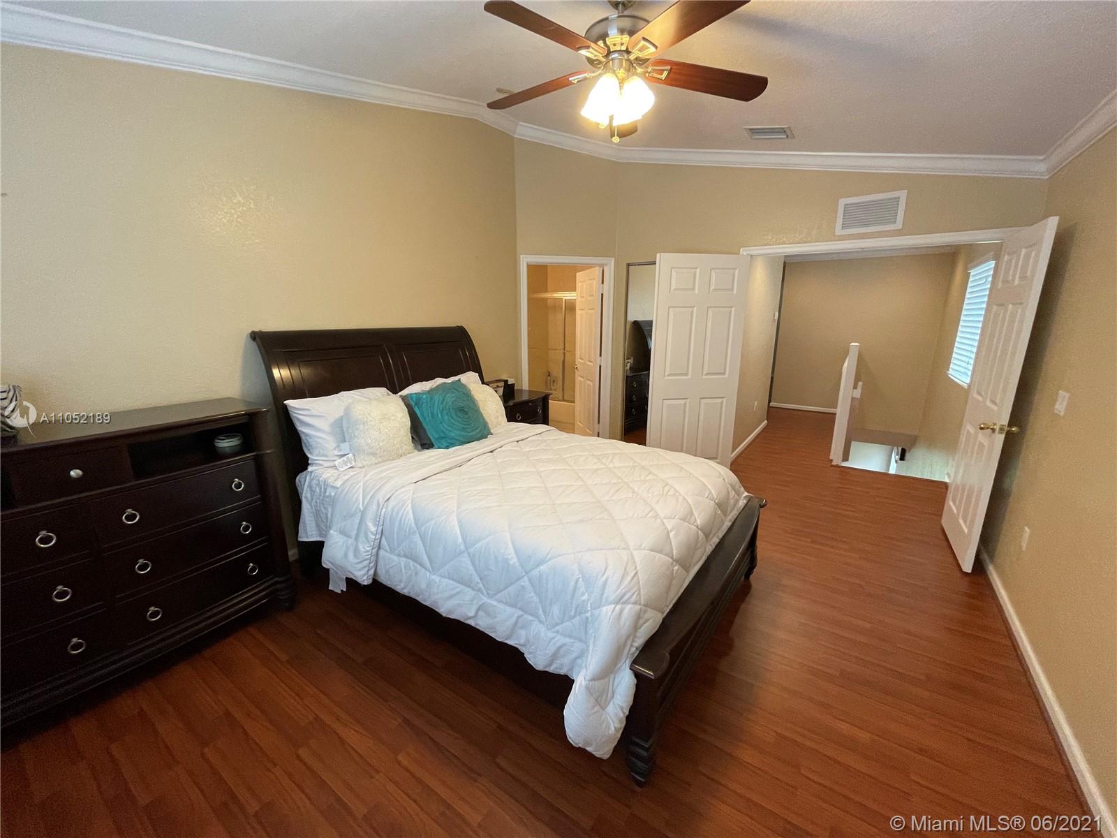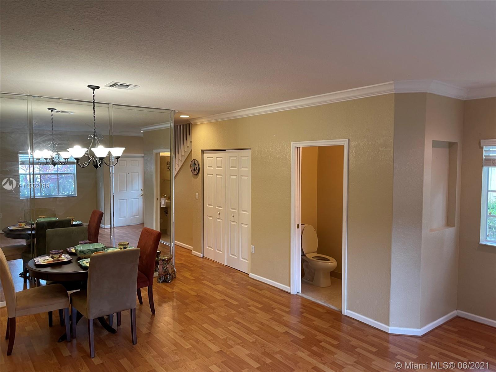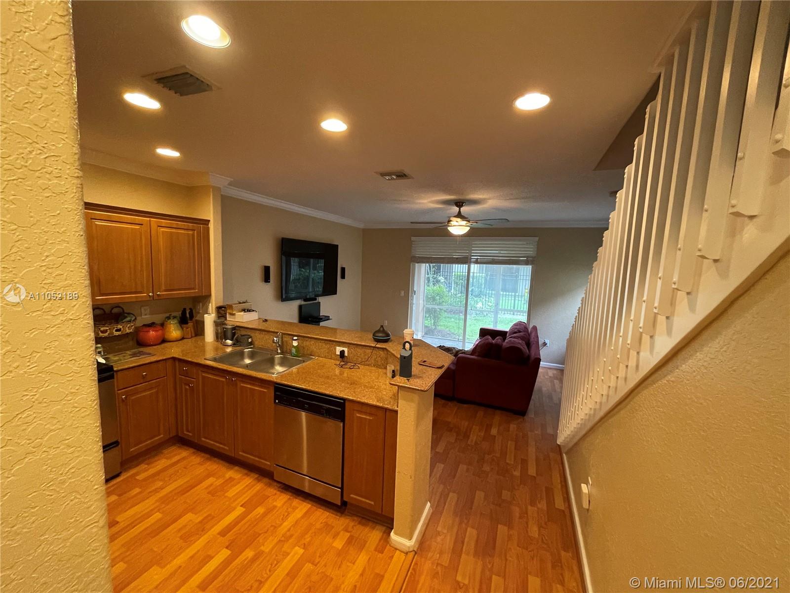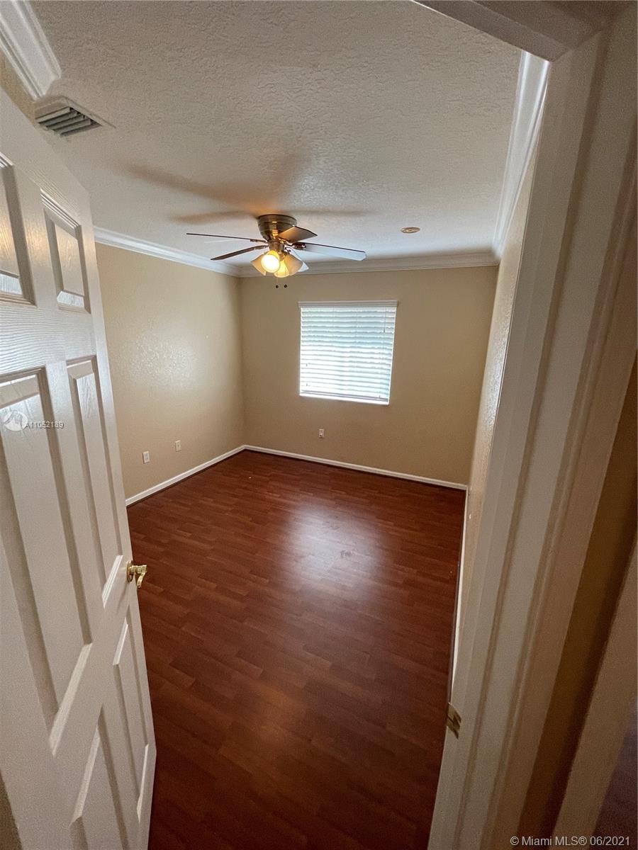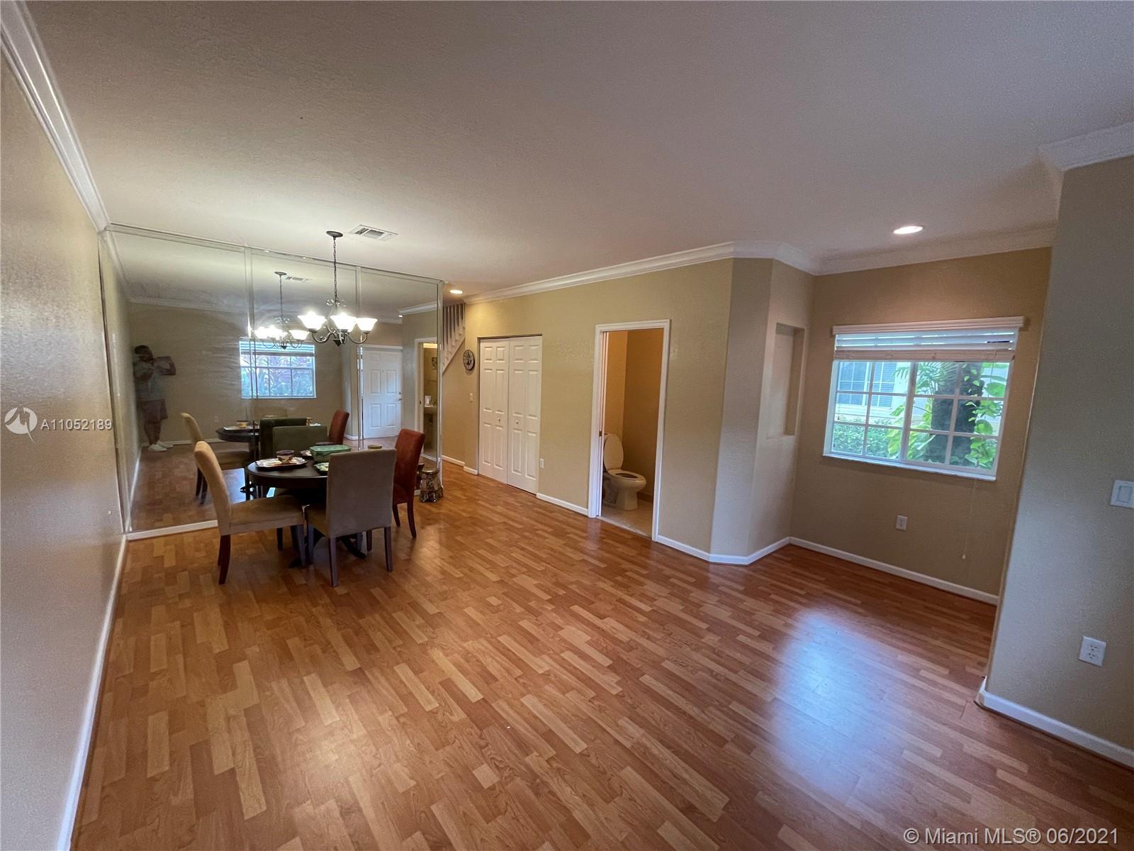 Don't miss out on this beautiful highly upgraded corner townhome. It has 3 bedrooms (The master is very spacious) and 2.5 bathrooms in the quiet and gated community of Murano at Hampton Park in the heart of Miramar. The house has hardwood throughout...crown molding throughout...custom sized wooden blinds throughout...upgraded ceiling fans throughout...and stainless steel kitchen appliances with granite countertops. The community has a clubhouse and fitness center, pool, tennis courts, and multiple playgrounds. Hoa covers building exterior, lawn maintenance and amenities.