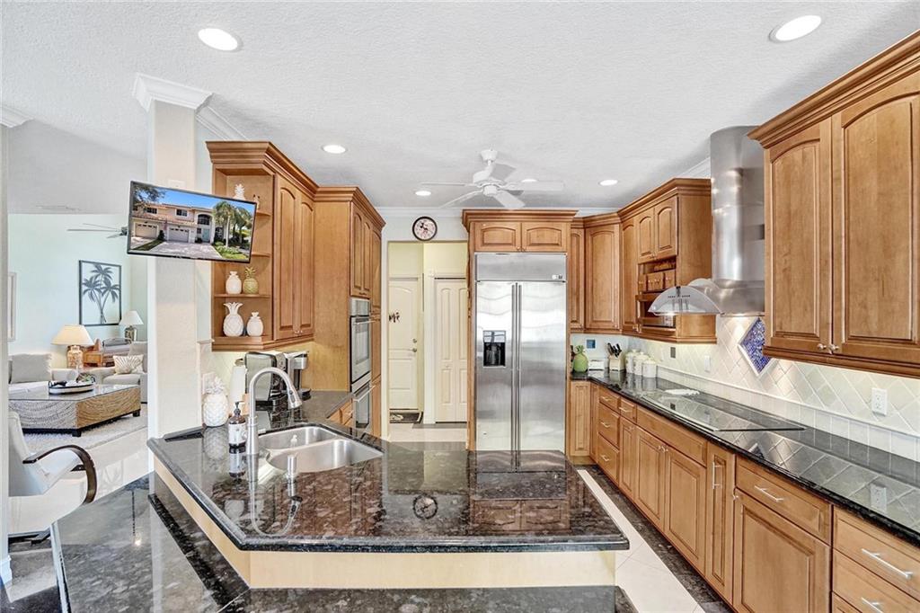 Picture perfect fee simple townhome located east of Federal Highway in Fort Lauderdale in a private enclave in Port Royale called Montego Bay. This corner unit features volume ceilings, impact glass, updated kitchen and baths, new roof, new HVAC, central vacuum system and is totally turnkey. Two bedrooms, two and a half bathrooms with an office. The primary bedroom has it's own office suite and cozy lounge area, two custom closets with built ins and a separate jacuzzi tub and shower. The downstairs living space is perfect for entertaining including a bar seating in the kitchen, two wine refrigerators and an eat in dining area all leading to a private tropical outdoor living space. Conveniently located just a few steps from the pool.
