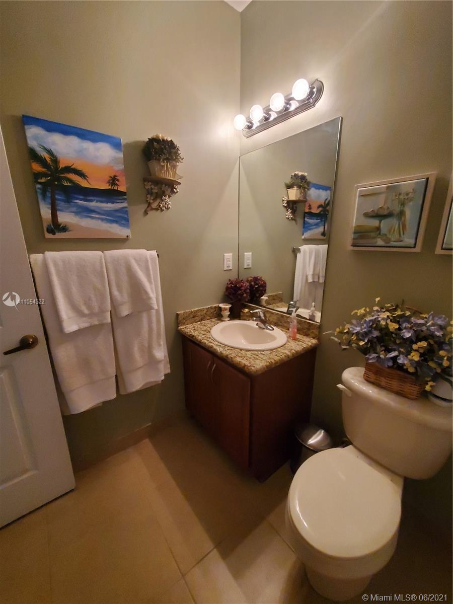 Expansive Townhouse with large living and dining room. Large 18x18 tile floors throughout the first floor. Kitchen has upgraded 36" wood cabinets, granite countertops and stainless steel appliances. Enjoy breakfast or coffee on the sit up counter in the kitchen. There is a bedroom and full bathroom located downstairs. Upstairs you will find a family room/den area which is perfect for the family and kids or can be used for an office area or converted to a 4th bedroom. This energy efficient home has hurricane impact windows. New carpet in the bedrooms, unit is very well maintained.