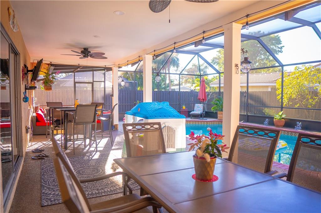 Beautiful home located on interior corner lot with 4 bedrooms 2 baths. Oversized remodeled kitchen with large center island. 2 pantries, big eat in area, loads of cabinets. Wine cooler. Both bathrooms are updated and remodeled. Beautifully landscaped, screened pool, fenced yard, quiet neighborhood. Mango tree. All new flooring.