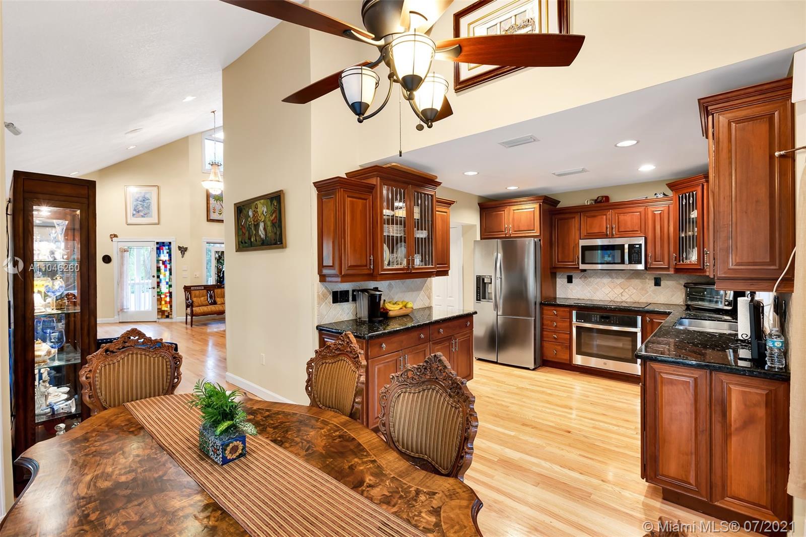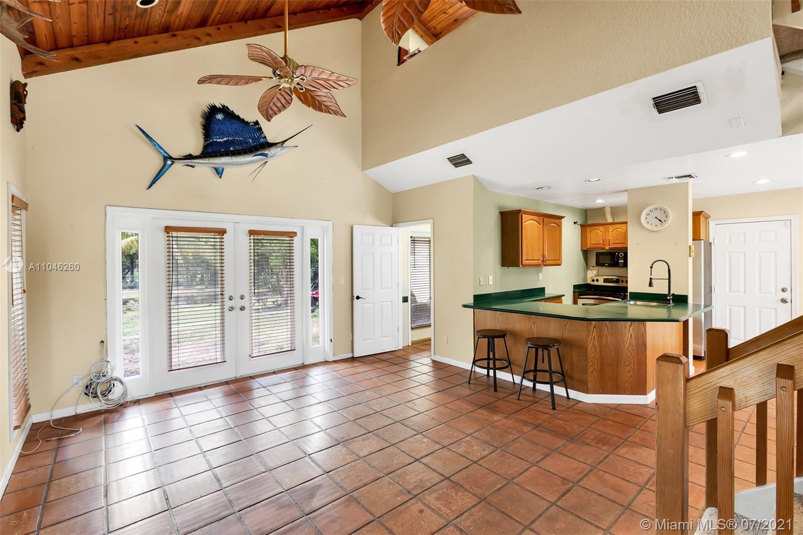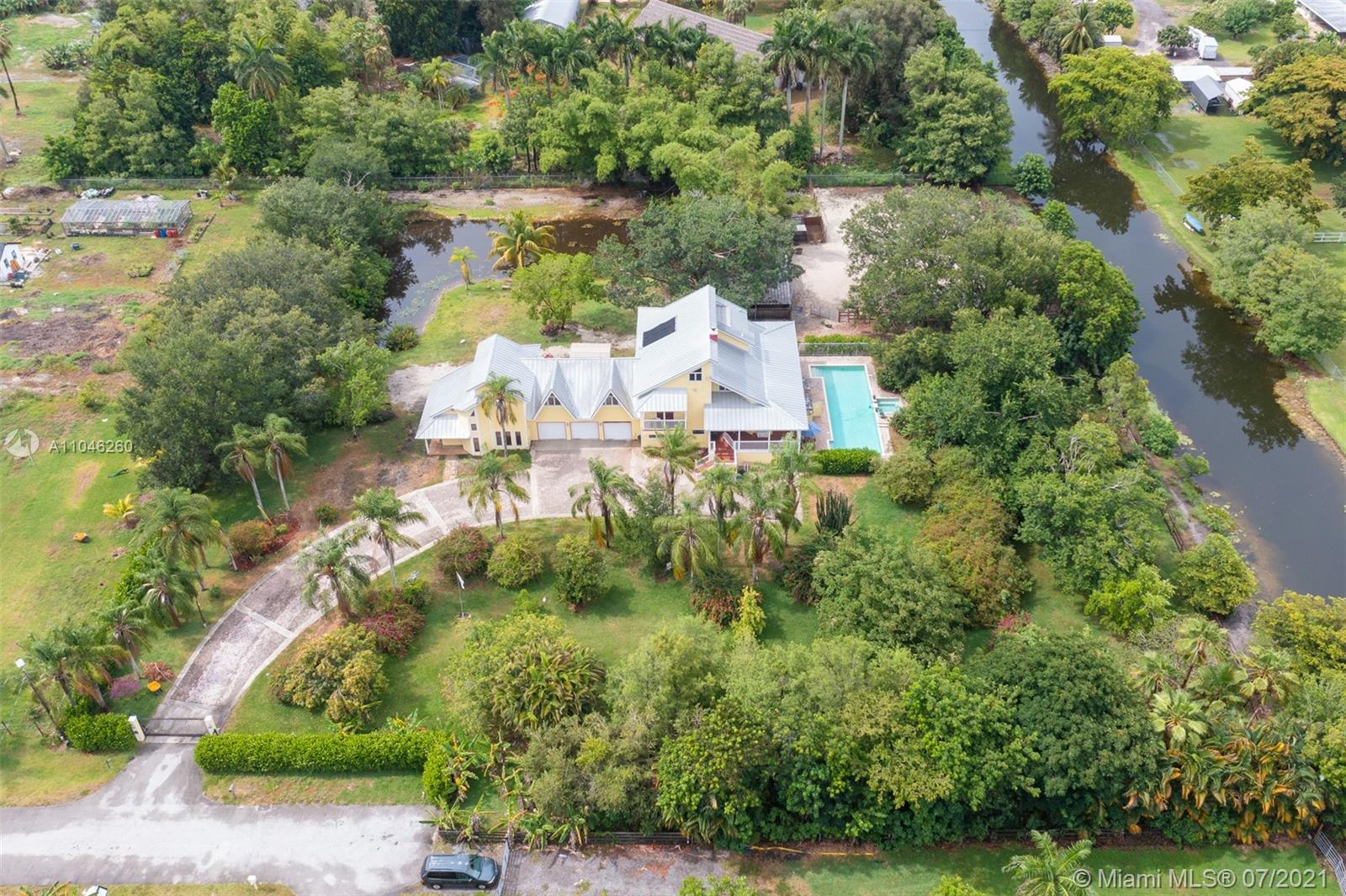 Welcome to your own private paradise! Prime corner lot perfectly situated in the heart of Southwest Ranches. Warm, inviting country living on a 2.52-acre ranch on a corner cul-de-sac with mature fruit trees, stocked pond and horse pasture, 4 stall barn with water and electric. Several sheds for feed/tack and equipment storage. Entire property is fenced and gated, including paddock. Wrap around balconies overlooking the front yard, pool, and barn area make for incredible views and great parties. Gated entrance with mature hedge lines for optimal privacy. *BONUS* West wing of home contains a separate 2 story 1 bedroom/2 full bath unit with separate entrance and full kitchen. Great for in-laws or income producing opportunity! Don't miss out on the opportunity to own a truly unique home!