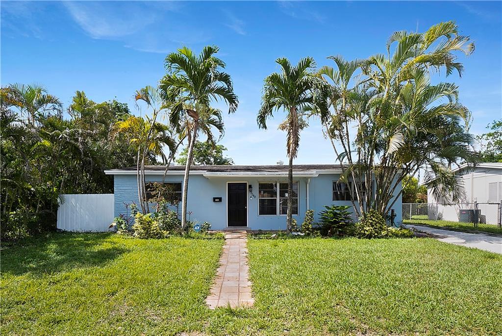 This quaint 3 bedroom, 2 bathroom single family Hollywood home is located on a quiet residential street. Terracotta paving stones lead to a house that is light and bright, featuring polished travertine tiles throughout. Updated kitchen with gas stove. A particularly attractive feature of this house is the Florida room that overlooks a large backyard. There is plenty of room to develop a lush tropical garden, or perhaps a pool. A separate large laundry room. The roof is from 2002 (repairs have taken place since then). Insulation installed 2012. AC 2012. Wind turbines replaced 2020. There was a Koi pond in the yard (which has been emptied and drained) - the pipes and liner are still in place.