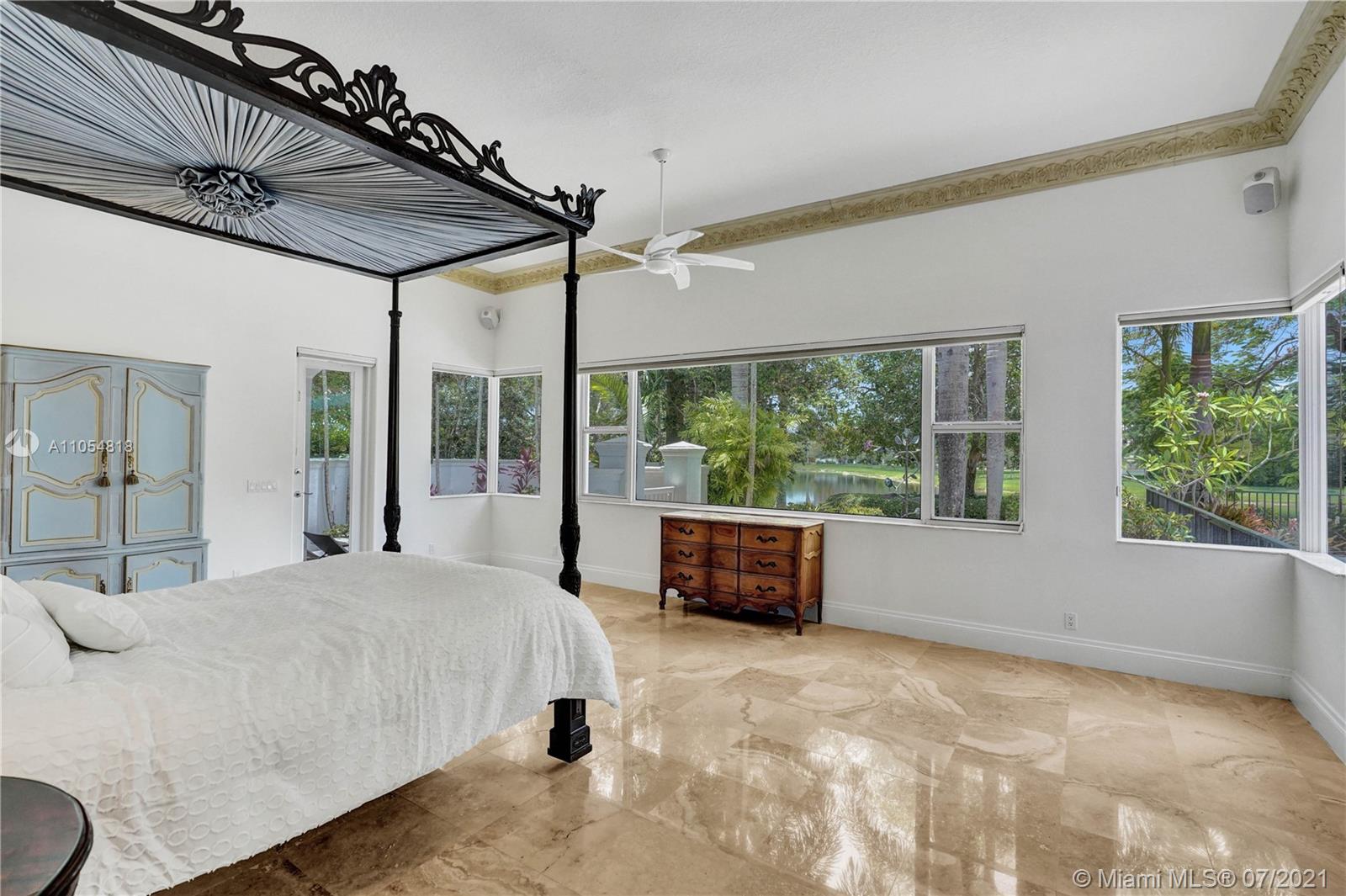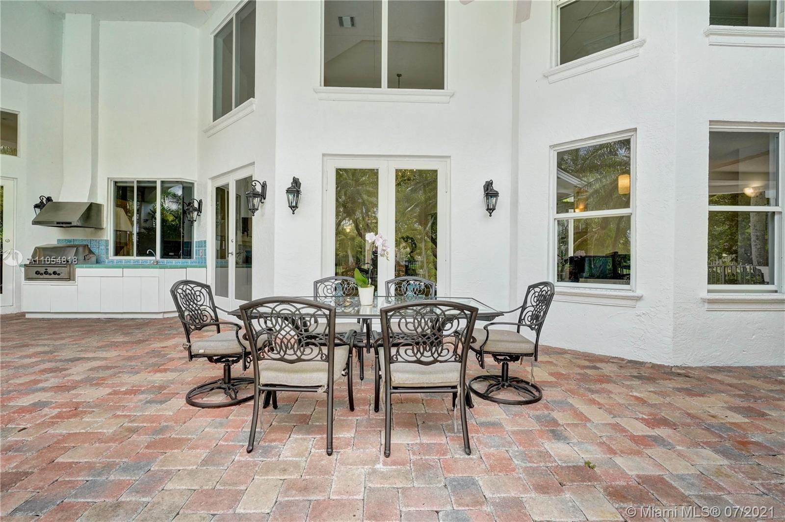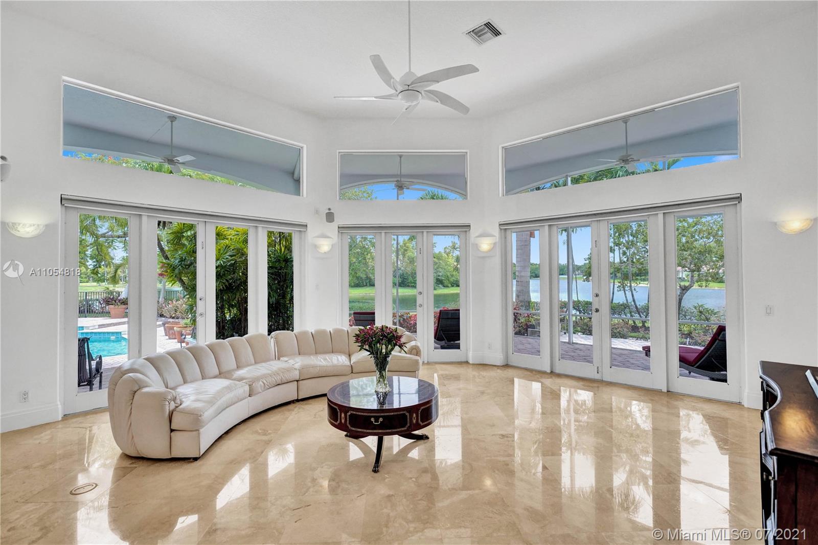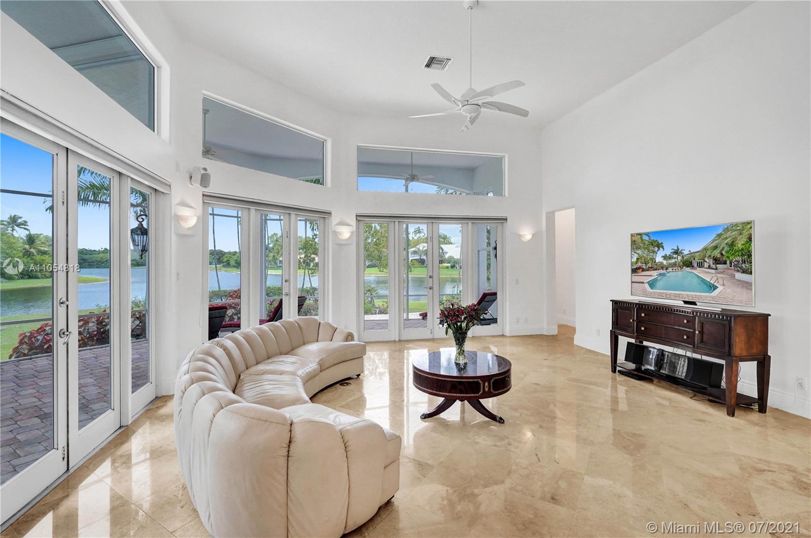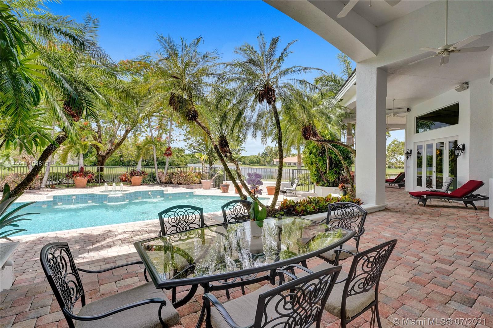FIRST TIME ON THE MARKET! Absolutely captivating & private lakefront residence in the sought after neighborhood of Windmill Ranch Estates! Not a detail was spared in this incredibly planned two story estate home - perfect for entertaining & luxury living. Features include: Serene 1.49 acre corner lot, grand entry with Porte cochere, 3 car garage, NEW roof, hurricane impact glass, 5 bedrooms, 4 1/2 baths PLUS gym, office, library, wine room & bonus room, oversized master suite with spa-like bath & separate outdoor spa, living room with soaring ceilings & fireplace, gourmet kitchen, 2nd office, family room with endless views, summer kitchen & resort style pool - all together with peaceful & relaxing walkways around the property to enjoy the picturesque lush landscaping & beautiful sunsets!