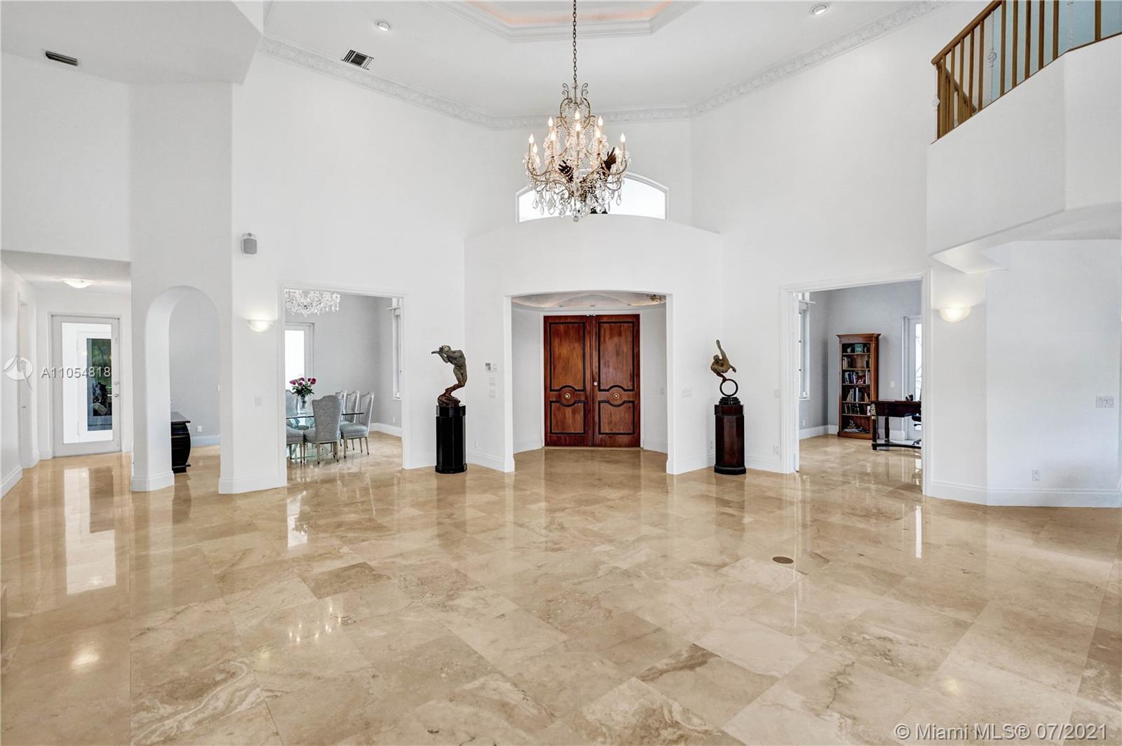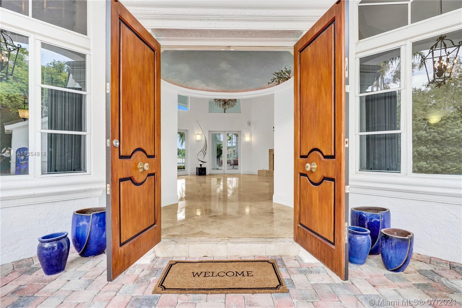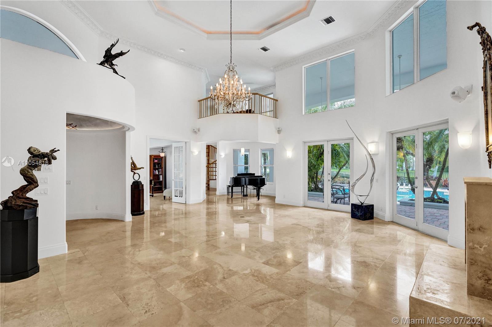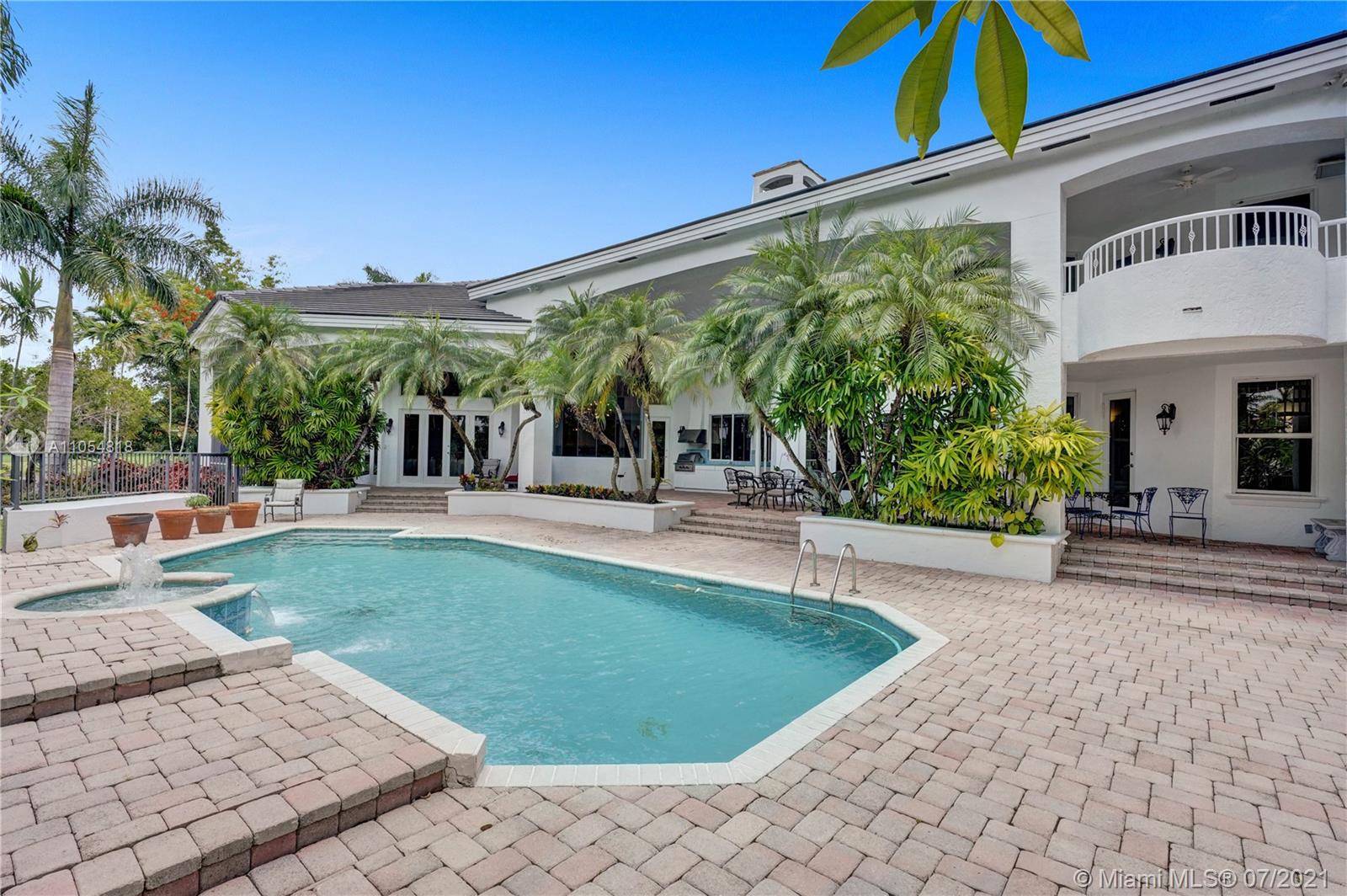 FIRST TIME ON THE MARKET! Absolutely captivating & private lakefront residence in the sought after neighborhood of Windmill Ranch Estates! Not a detail was spared in this incredibly planned two story estate home - perfect for entertaining & luxury living. Features include: Serene 1.49 acre corner lot, grand entry with Porte cochere, 3 car garage, NEW roof, hurricane impact glass, 5 bedrooms, 4 1/2 baths PLUS gym, office, library, wine room & bonus room, oversized master suite with spa-like bath & separate outdoor spa, living room with soaring ceilings & fireplace, gourmet kitchen, 2nd office, family room with endless views, summer kitchen & resort style pool - all together with peaceful & relaxing walkways around the property to enjoy the picturesque lush landscaping & beautiful sunsets!