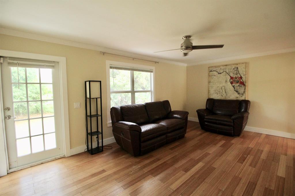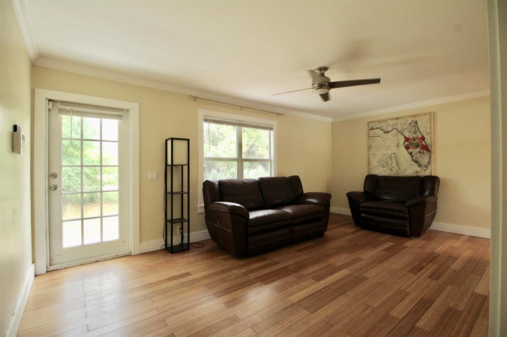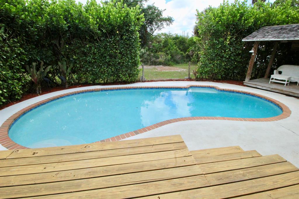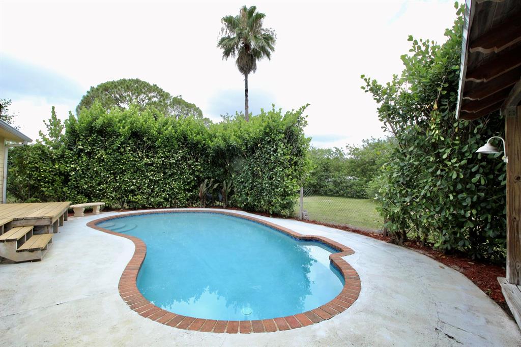 Move-in ready house on a huge lot! Remodeled kitchen and bathrooms, granite and marble countertops, bamboo wood floors throughout, impact windows, crown molding, deck, 1.33 acres completely fenced. Cool off in the freeform pool, sip a cold drink in the covered gazebo and enjoy the oversized back yard. Has a 26' X 12' shed for lots of storage. Large safe in master closet stays.