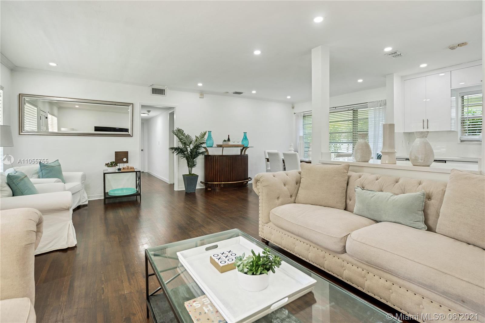 Centrally located single family home in Coral Gables near Riviera Golf Course, UM & The Biltmore Hotel. Two blocks from Betsey Adams park/playground. Renovated 3 bedroom /2 full bathrooms home and a one car garage. Features great curb appeal with professional and easy to maintain landscaping, including a fenced-in side yard and spacious outdoor entertaining/sitting area. Updates/features include new roof, open floor plan, original hardwood floors, updated bathrooms, custom kitchen with quartz countertops, s/s appliances, pantry and a built-in storage banquette. Large windows which allow for plenty of natural light. The property has been appointed with new LED high hats and freshly painted. This ideal family and entertaining home perfectly situated in a prime Coral Gables location.