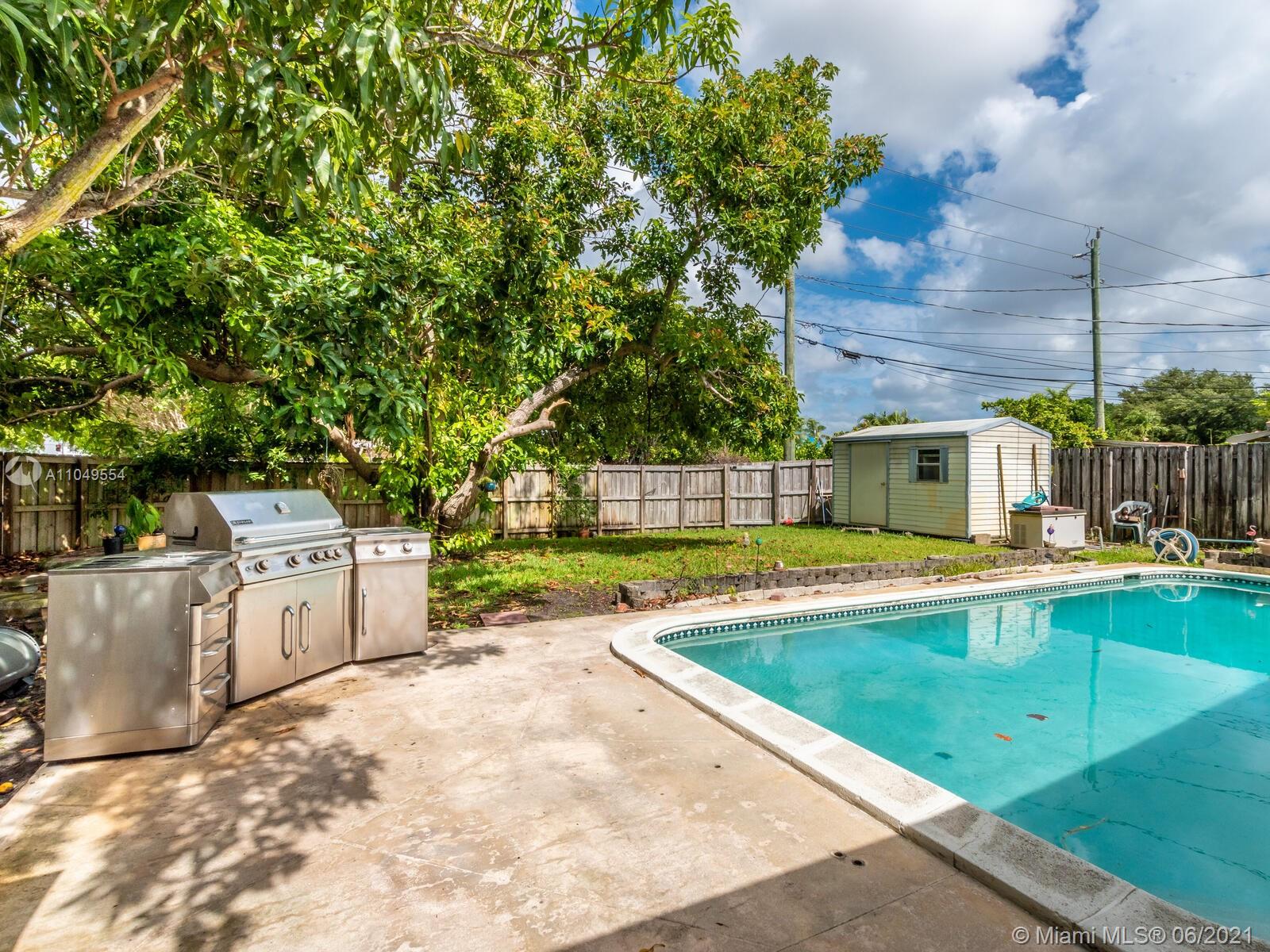 Great Hollywood Hills Home with 3 Bedrooms & 2 Baths Plus a Bonus Room that can be a 4th Bedroom, Family Rm. or Dinning Rm. located in Hollywood Hills. Brand New Roof as of May/2021 less than 1 month old. Exterior has been Freshly Painted. Home has Natural Gas with Permanent Generator, Dryer & Water Heater. Kitchen has been updated with Stainless Steel Appliances and wood cabinets and Baths with Travertine. Free Standing Extra Large Freezer included. Corner Lot with many fruit trees and Large Backyard with in ground pool and 2 storage sheds. Backyard completely fenced in for privacy. Priced to Sell Today!