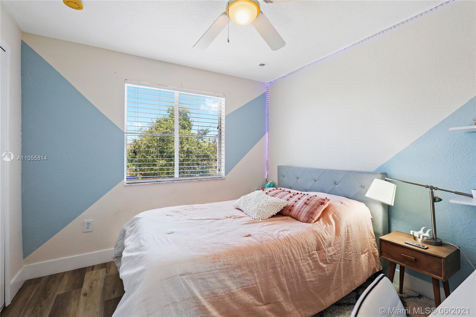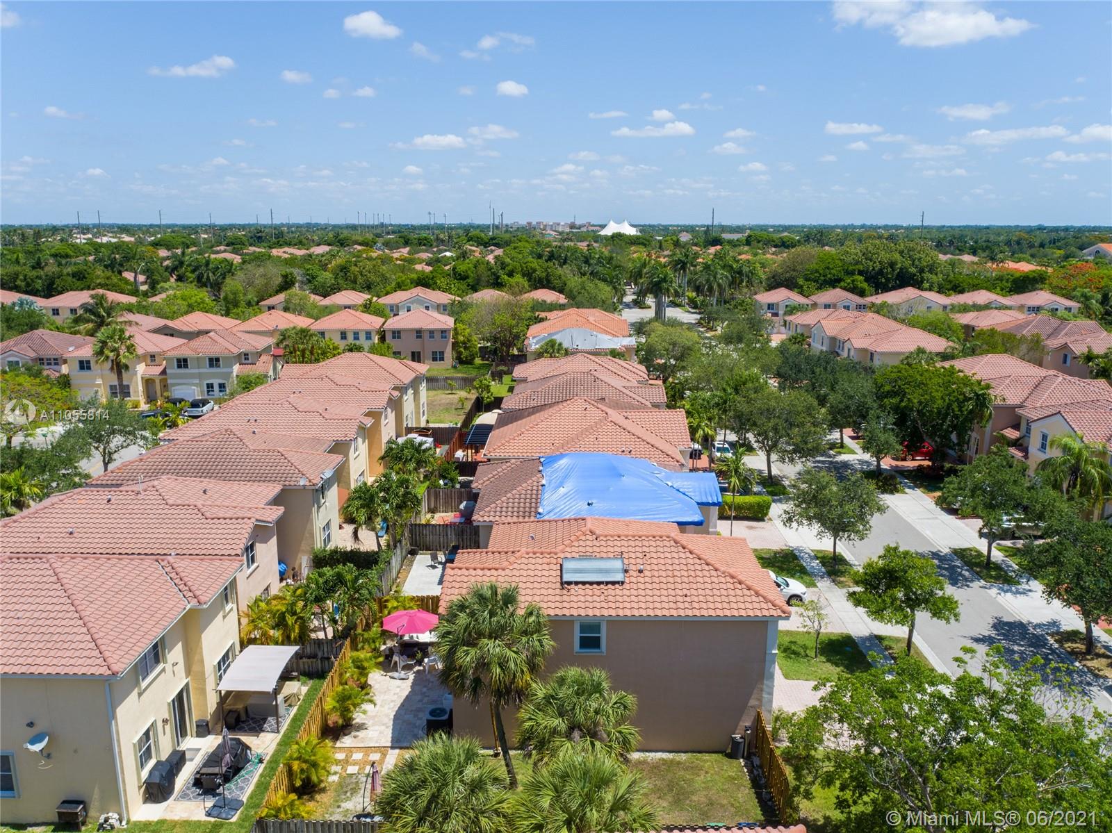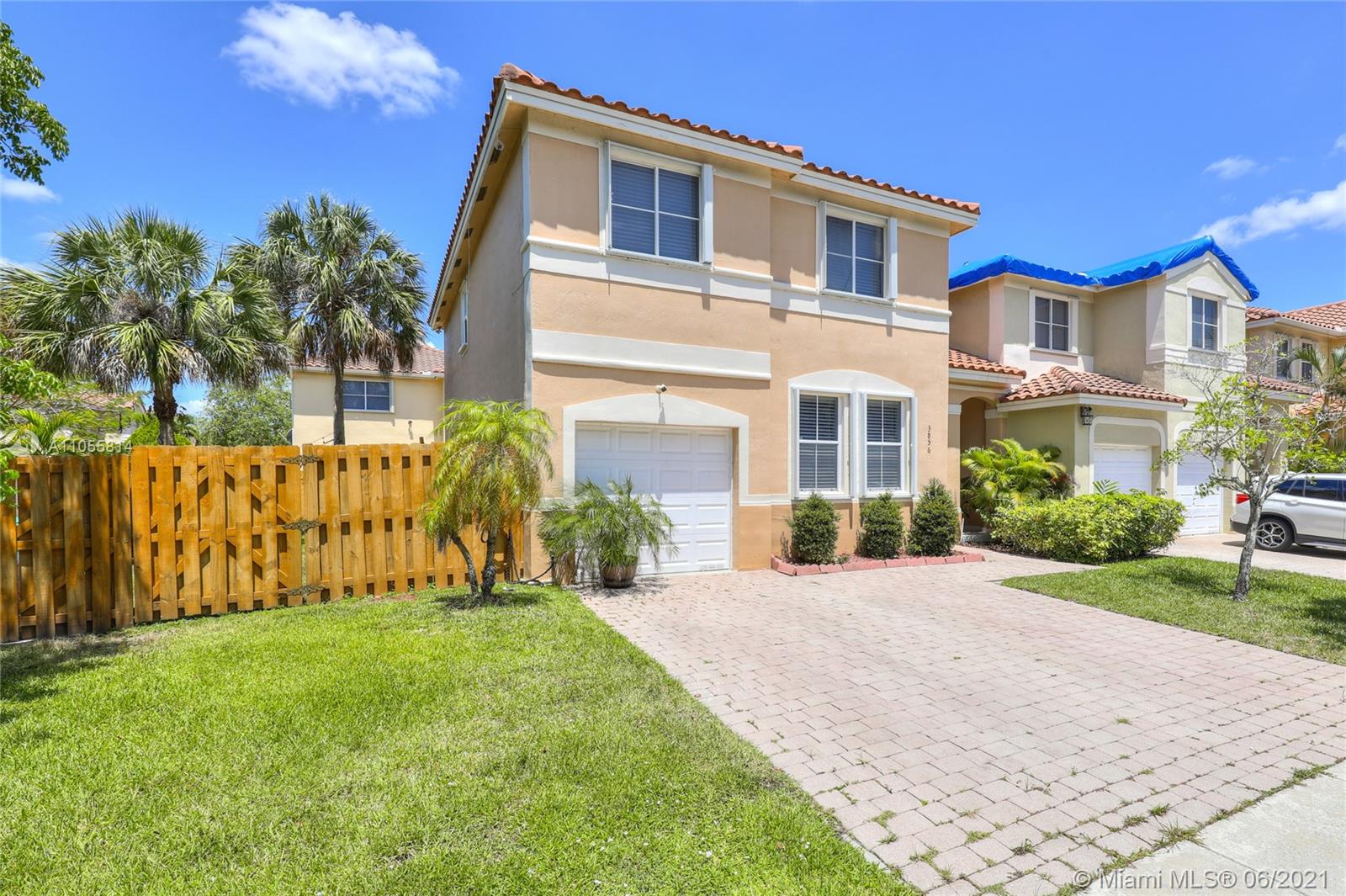 Beautiful 2-story corner unit with oversized back yard. Kitchen was recently remodeled, new laminate waterproof flooring on the first floor. Bathrooms have new vanities, toilets, mirrors, and light fixtures. Accordion shutters throughout. 24:7 security and guard gate. Amenities include a pool, clubhouse/community room, tennis courts, basketball court, gym, and plenty of bike and jogging paths. Garage was partially converted to a gym and sound booth.