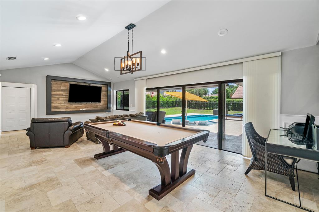 DO NOT MISS! one of a kind designer home. This 4 bedroom 3 bathroom home is fully renovated with top of the line finishes which include an open floor plan. Custom 9ft cabinetry, QUARTZ countertops, oversized island with MIELE appliances. RESTORATION HARDWARE light fixtures. 18ft ceilings in main living area. LUXURY master custom closet and bath. Cathedral ceiling in family room. Full hurricane impact windows and doors. A SMART home. travertine tile. Patio features a pool with Sun Shelf. Located in the highly desirable New Floresta neighborhood with LOW HOA! Walking distance to Town Center Mall. A-RATED schools