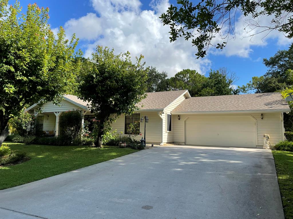 Getaway to this Peaceful Oasis - 1.25 Acres, 1,836 Sq Ft Living, Beautiful Lush Landscaping, Fully Sodded & Fenced, Elevated Gazebo Overlooking Large Pond with Water Feature, Parklike Setting to Enjoy Nature while Resting on the Hammock, Sitting around the Firepit - Paved Road, Iron Gates Open at both ends of Massive Size Circular Concrete Driveway with Lots of Parking Space, 2 Car Attached Garage, Carport, Shed, Lights throughout Lead to Covered Front Porch with Swing, Zoned Sprinkler System Water from Canal, Newer Roof, Vaulted/Cathedral Ceilings, Crown Molding, Wood Cabinets, 20'' Floor Tile, Ceiling Fans + More. Plenty of Areas for Social Distancing. **NO HOA** Bring your Pets, RV, Boat, Truck, Commercial Vehicles, Located near SR-7/441. This Amazing Property is a Must See!