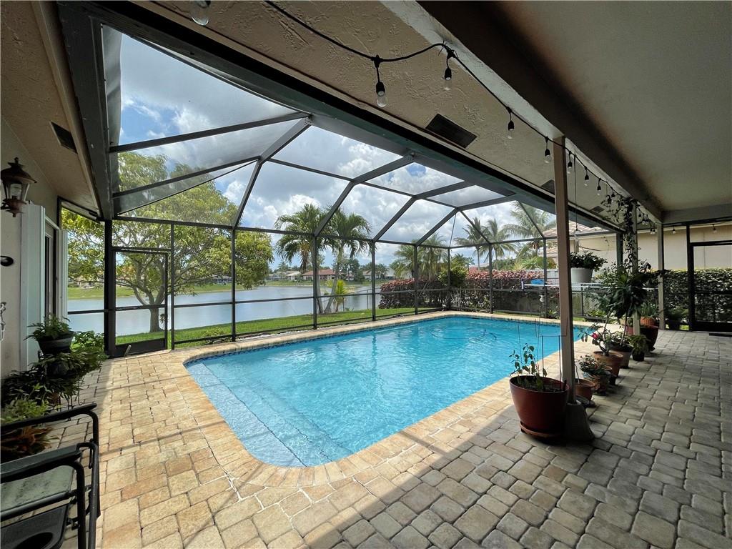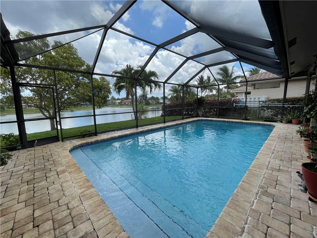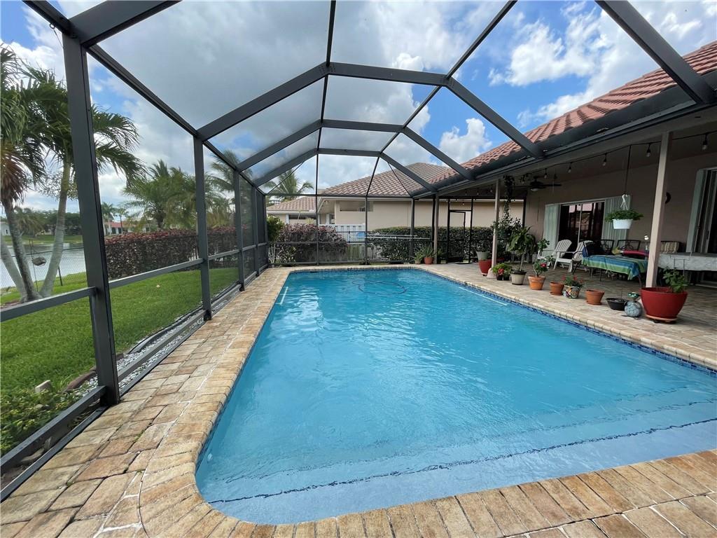 Stunning lakefront 5 bed 2.5 bath 2 car garage, pool estate in the desirable gated community Carriage Pointe of Coral Springs. Home is situated on an oversized lot (12,400 sq ft), two years old roof, Accordion shutters and Impact windows, tile floors thru-out, volume ceilings , formal dining/living rooms, family room, eat-in kitchen w/double ovens & cooktop stove, cabana bathroom, spacious Master Suite boasts His/Her walk-in closets, laundry room & storage and huge screened-in/covered patio overlooking pool & canal. Low HOA fee!. 24 hours guard gated community. Great location near Sawgrass HWY, 441, Shopping, Restaurants, Parks, Malls and more!! 20 min to Beach! HOA $143.00 a month!!