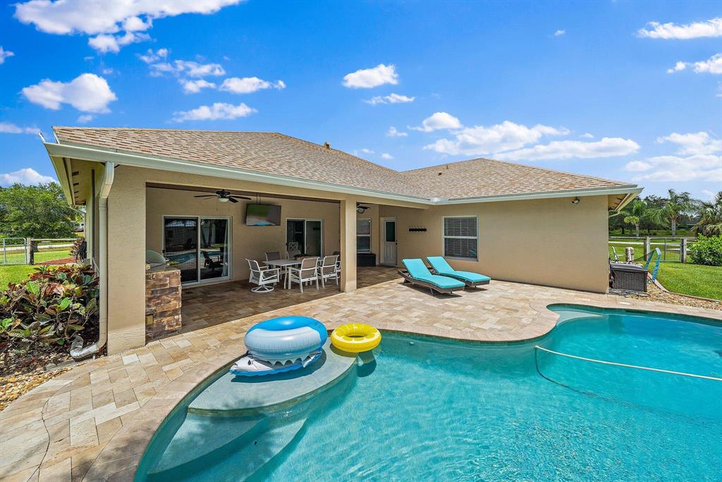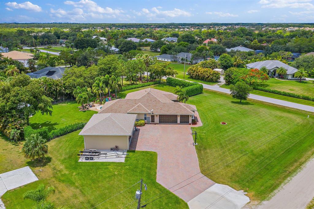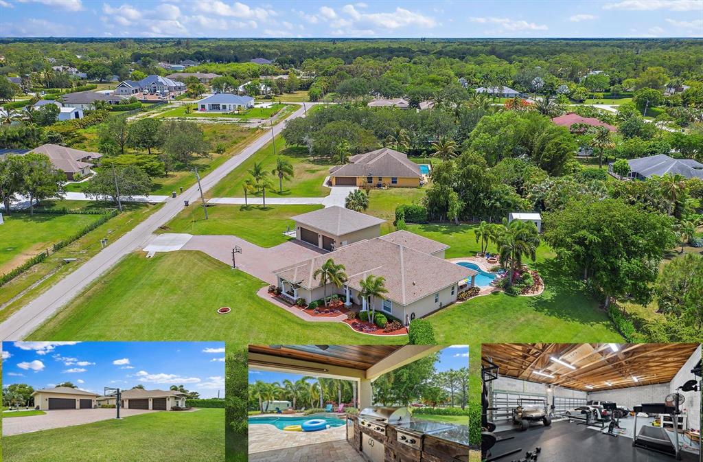 *BRING ALL YOUR TOYS* 6 GARAGE SPACES* 1.3 ACRES* NO HOA* 4/2 POOL HOME*Come and take a look at this fabulous Palm Beach Country Estates gem, but don't wait! Pride of ownership shows in every detail. Built in 2011 with an additional 1000 SQ foot detached garage/workshop added in 2020. The main home and detached garage are both CBS. The home further benefits from impact windows. Over 2600 SQ feet under air providing 4 bedrooms & 2 full bathrooms within a spacious, split floor plan. Sliders from the dining room and master bedroom open to the covered outdoor kitchen/entertaining area and the tropical pool deck just beyond. The fully sodded, irrigated & meticulously landscaped LOT extends to a little over 1.3 acres.Video tour attached.Showings available from Friday 30th July.