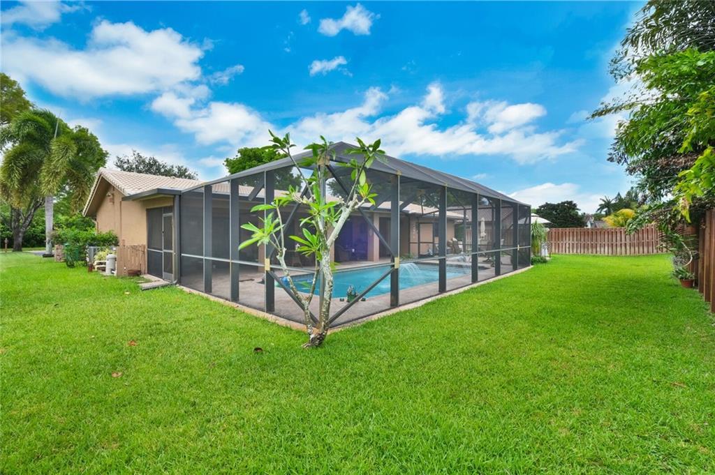 Beautiful home in highly desirable Shadow Wood neighborhood on 1/4 acre lot! Hurricane impact windows & doors! Beautifully updated kitchen opens up to the family room w/ built in bar and overlooks the peaceful screened in pool w/ waterfall feature. Backyard features an extended patio area and tons of yard space - great for grilling & outdoor entertainment! Oversized master bedroom features XXL walk-in closet. Master bathroom features large walk-in shower and double vanity with tons of counter space. All bedrooms are generously sized with built-in closet organizers. Main roof replaced 2000, flat roof replaced 2018.