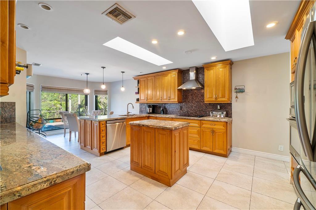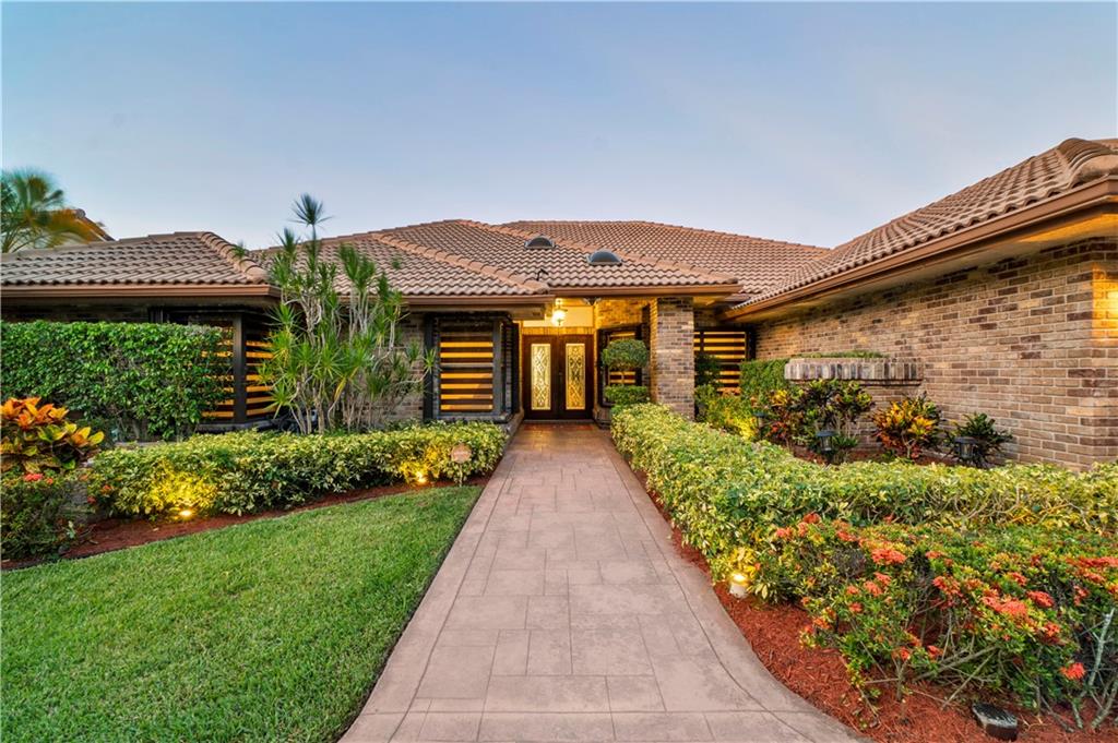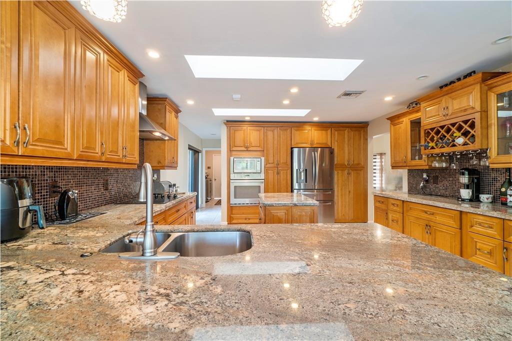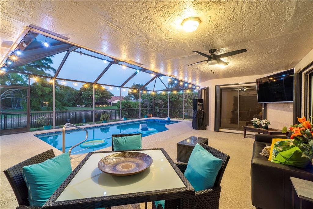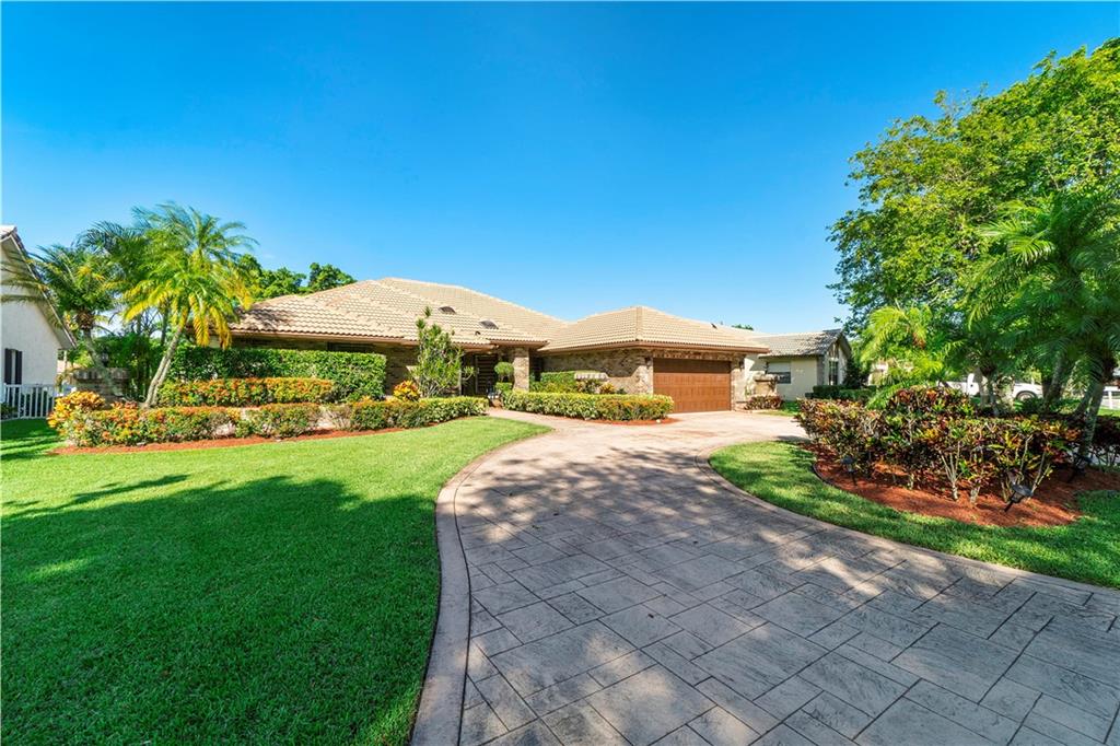 Fabulous Executive 4 bedrooms/2.5 baths pool home on water offers a spacious open floor plan in Pine Ridge. An entertainer's delight with a remodeled gourmet kitchen, granite, wood cabinets, SS appliances and cooking island. Stacked bedrooms- Master bedroom has a full size walk-in closet, All bathrooms have been remodeled. Totally fenced yard. Accordion shutters thru out. Tankless water heater. Multiple skylights for lots of light. Inside utility room. A screened private pool area overlooking water with outdoor shower. Circular driveway -beautiful landscaping and great cub appeal. Lots of parks nearby. South Florida living at its best!!!!
