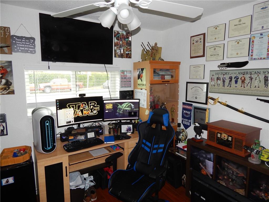 Enjoy over 1600 square feet under air. Inside find an oversized L-shaped living/family area. Family room is currently divided into a work area and bedroom. Master bedroom has walk-in closet and remodeled bathroom. 3rd bedroom is set up as an office. Large Kitchen with granite countertops, tile backsplash and stainless-steel appliances. Property is smart house capable, has Hi-Impact windows and sliders, newer a/c, and the roof replaced in 2017. Outside find a large paver circular driveway, solar lighting and a wireless sprinkler system. Relax in your privately fenced backyard with pavers laid throughout so there is lots of space for entertaining. Located in West Boca near A rated schools and many local parks and the 441 restaurant and shopping corridor and the new Uptown Boca Plaza.
