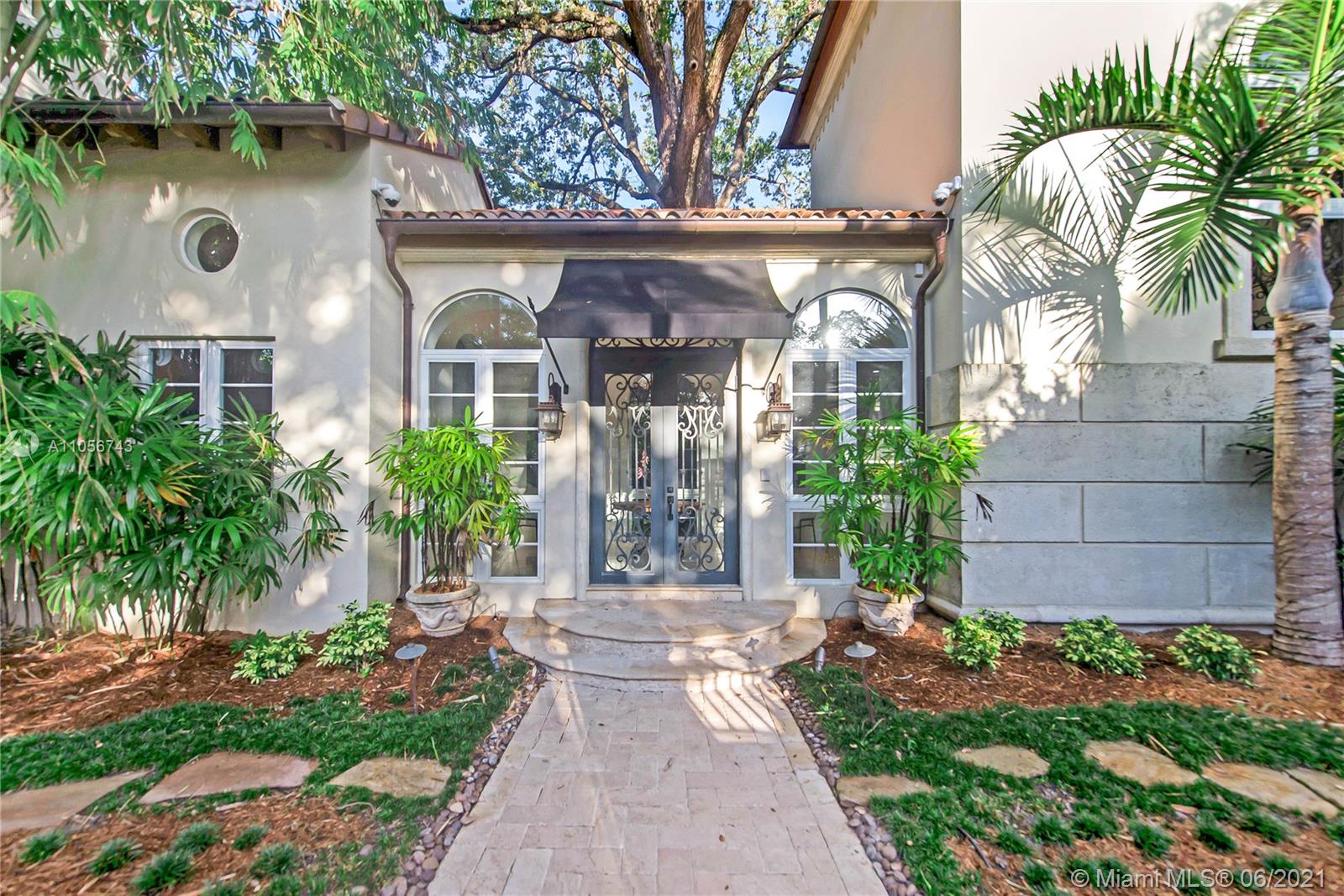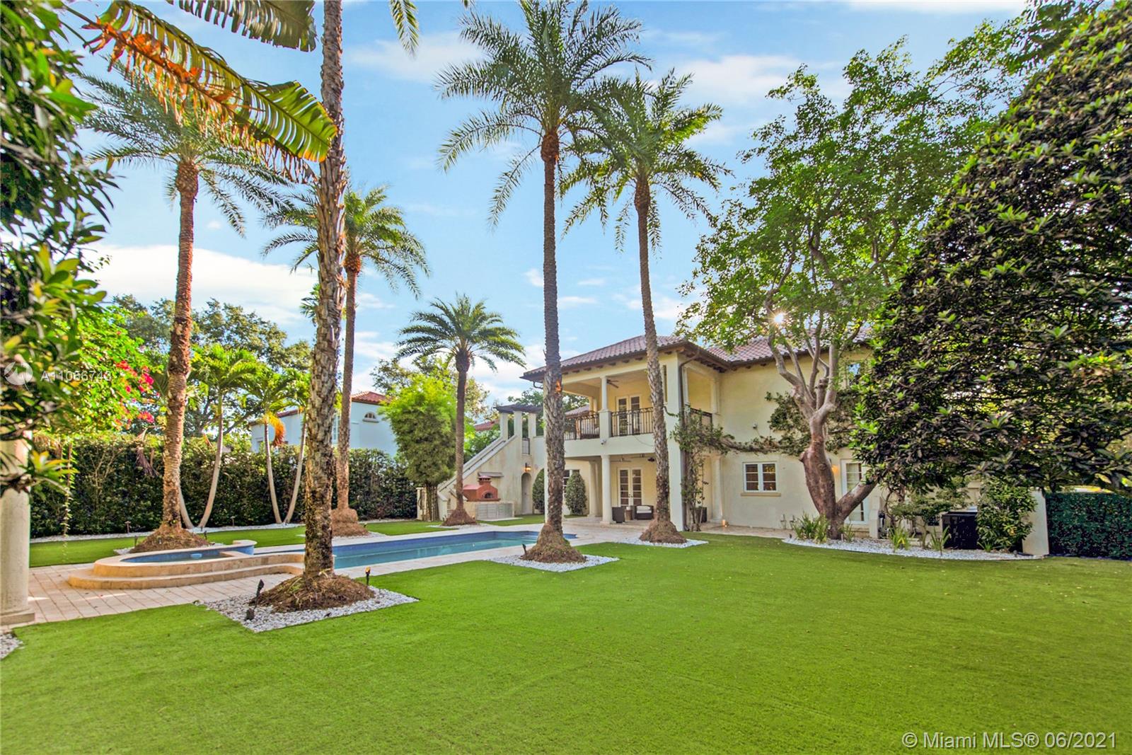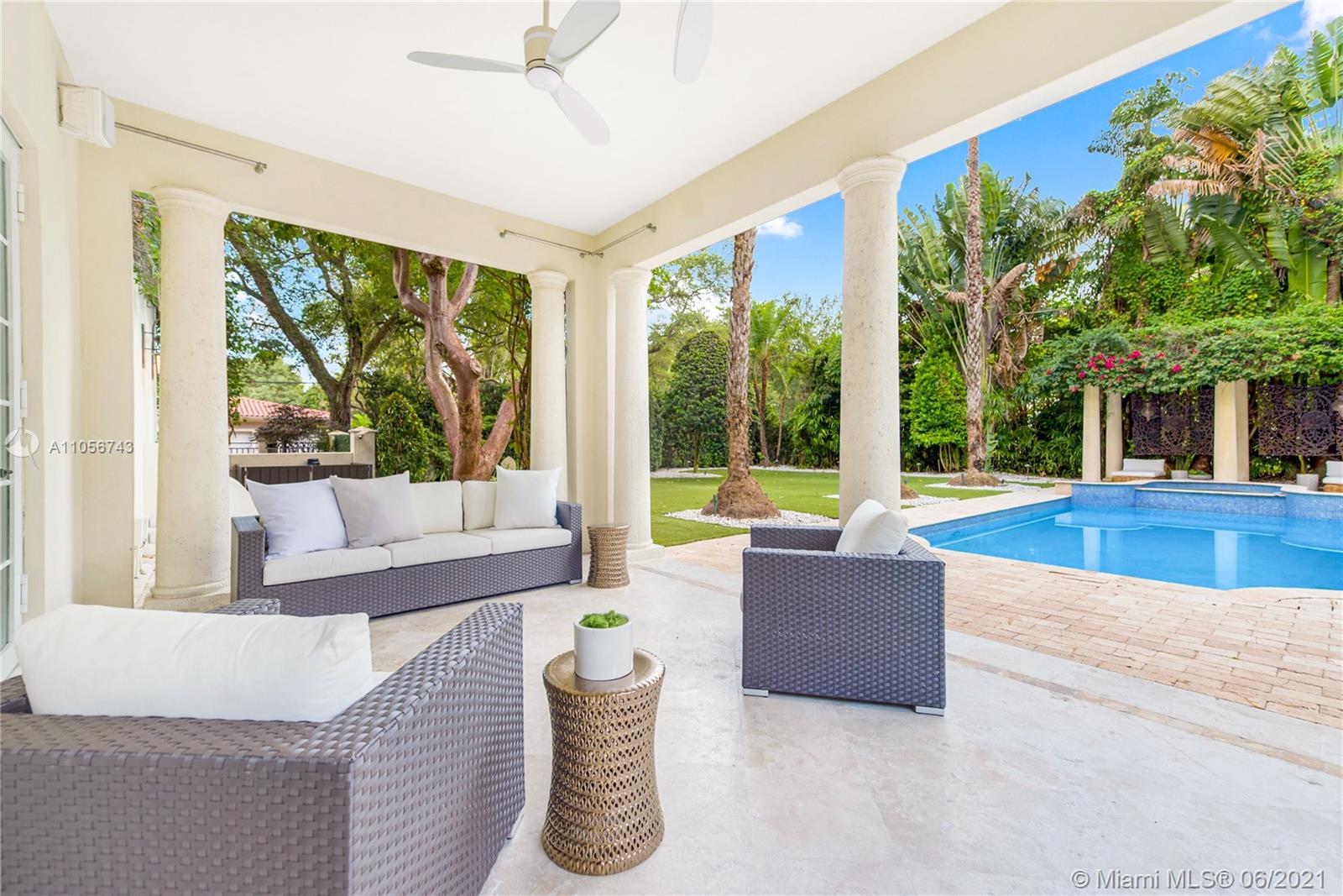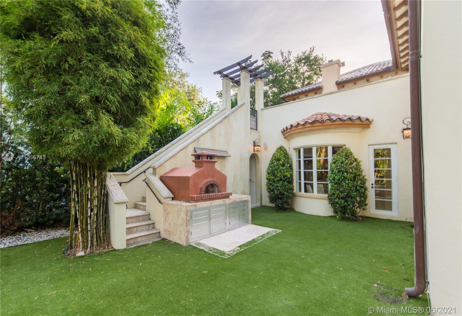 Majestic Gables home welcomes you with its old-world charm yet the luxury of newer construction. Built on an oversized corner lot in 2004 this 6-bedroom 6.5 bath offers room for the entire family and an en-suite bath for every bedroom. Enjoy formal living in the vaulted wood beamed living room with fireplace or the stately library. Relax in the large family room off the kitchen that opens to one of the many covered patio areas. Long linear pool leads the eye outside to enjoy the lush oversized fenced backyard. Great walkability to the Biltmore Hotel and downtown Coral Gables. This home has much to offer… Even a built-in outdoor pizza oven!