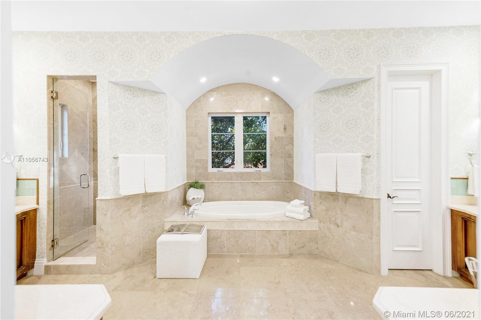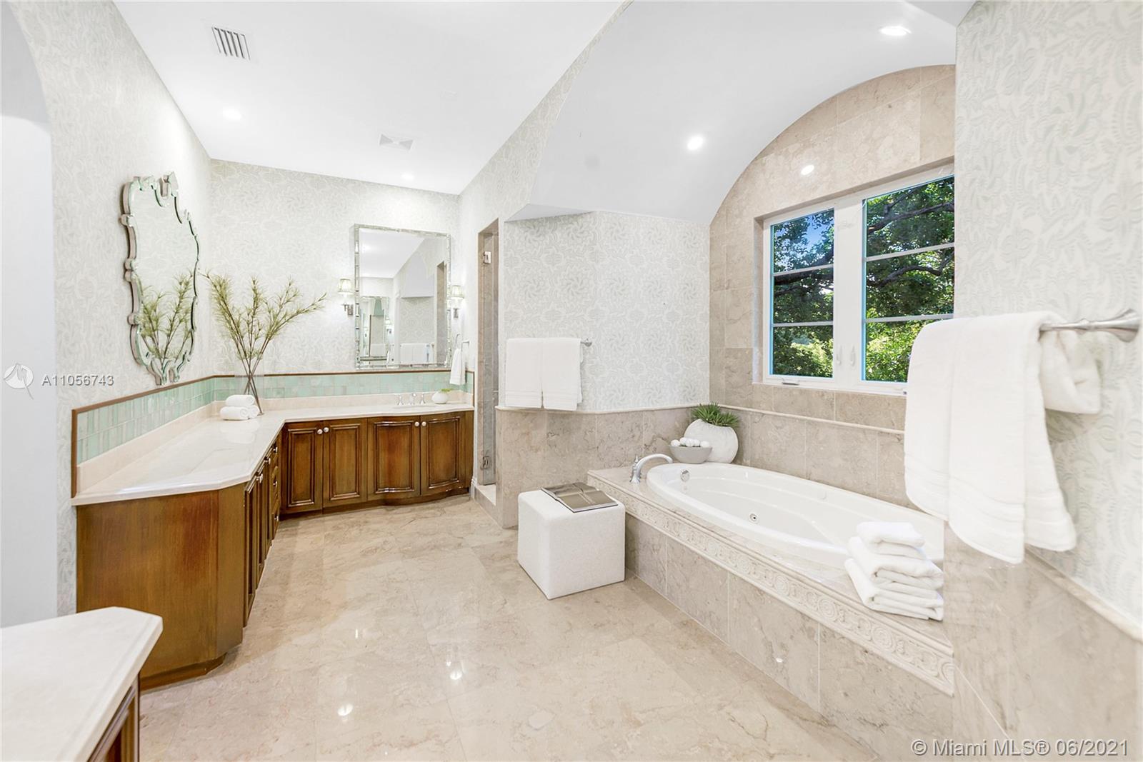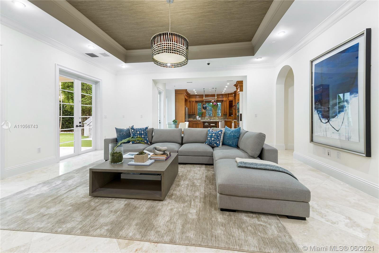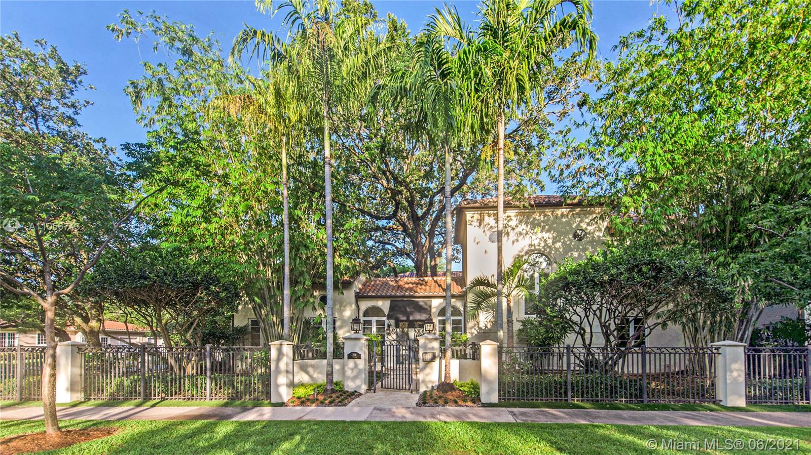 Majestic Gables home welcomes you with its old-world charm yet the luxury of newer construction. Built on an oversized corner lot in 2004 this 6-bedroom 6.5 bath offers room for the entire family and an en-suite bath for every bedroom. Enjoy formal living in the vaulted wood beamed living room with fireplace or the stately library. Relax in the large family room off the kitchen that opens to one of the many covered patio areas. Long linear pool leads the eye outside to enjoy the lush oversized fenced backyard. Great walkability to the Biltmore Hotel and downtown Coral Gables. This home has much to offer… Even a built-in outdoor pizza oven!