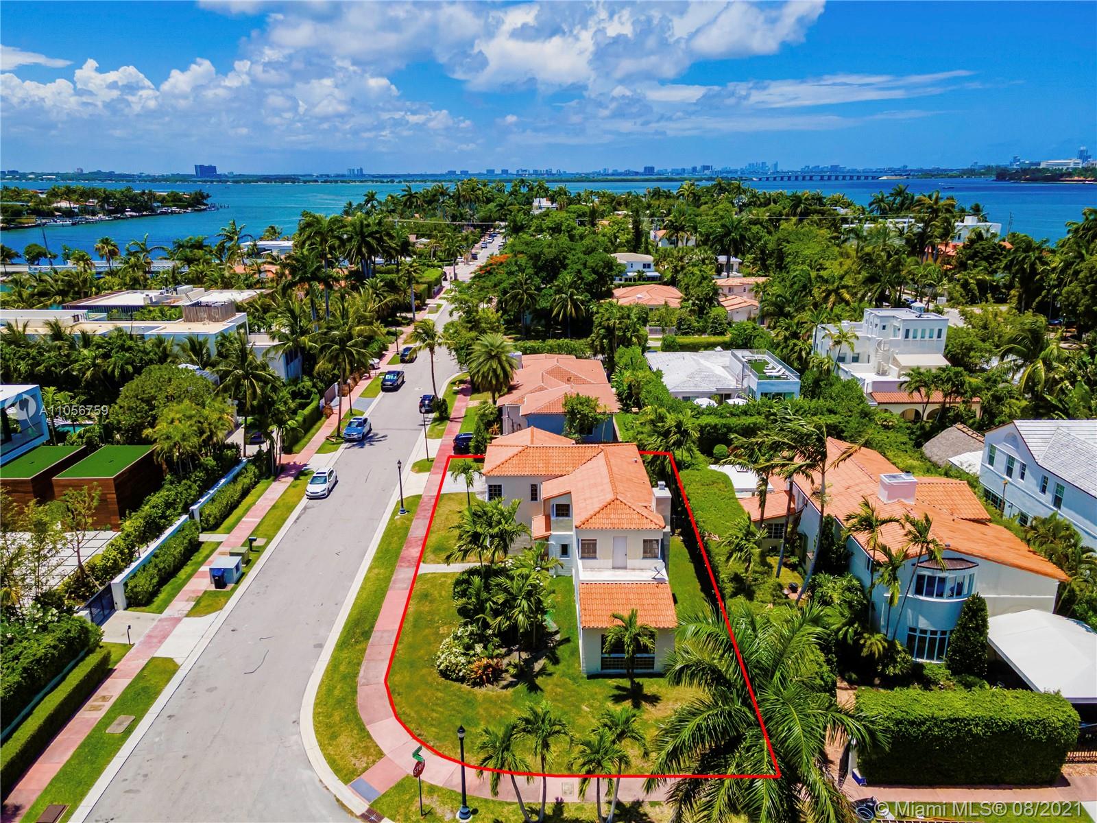Prestigious Venetian Causeway - Rivo Alto Island - Classic 1936 Art Deco Home awaits your special vision. Large Corner Lot - minutes to Sunset Harbour, Lincoln Rd dining, shopping, fitness & more. Architectural features include: high ceilings, deco details, archways, moldings, original Spanish tile & wood flooring. Bedrm w/en-suite baths. 4 BRs (2 principal suites) + Florida room, formal DR, large kitchen & LR w/fireplace. Off utility room, a 2 car garage has been enclosed, finished & adds substantially to under A/C living space - may be used as separate guest quarters. Updates made to electric, plumbing, roof & 3 Central A/C units. Room for a pool. Best value today on the Venetian Islands. New Home across the street sold for approx. $20 Million. Check out Matterport virtual tour on link.