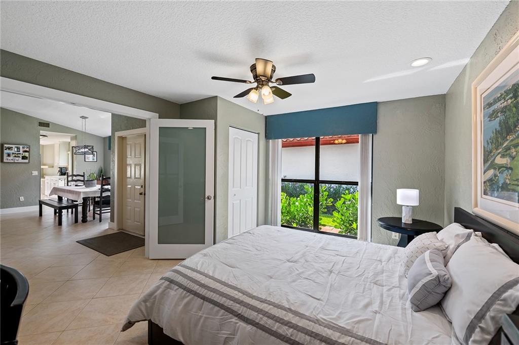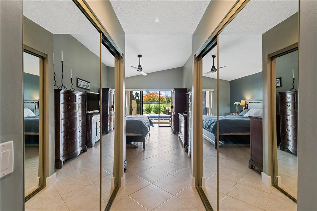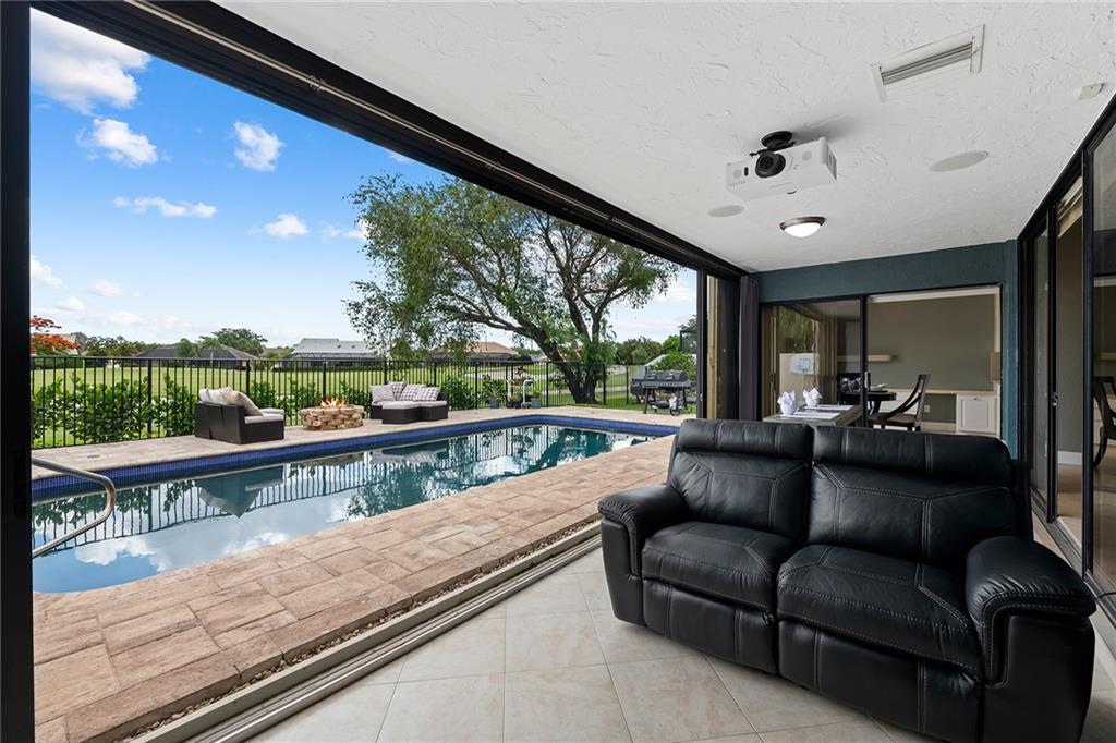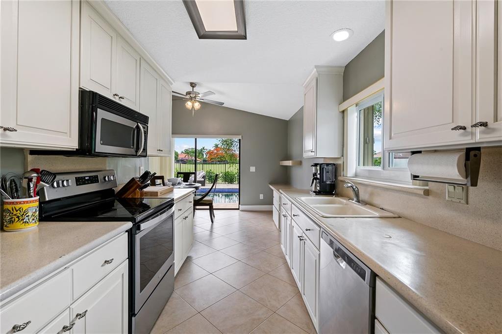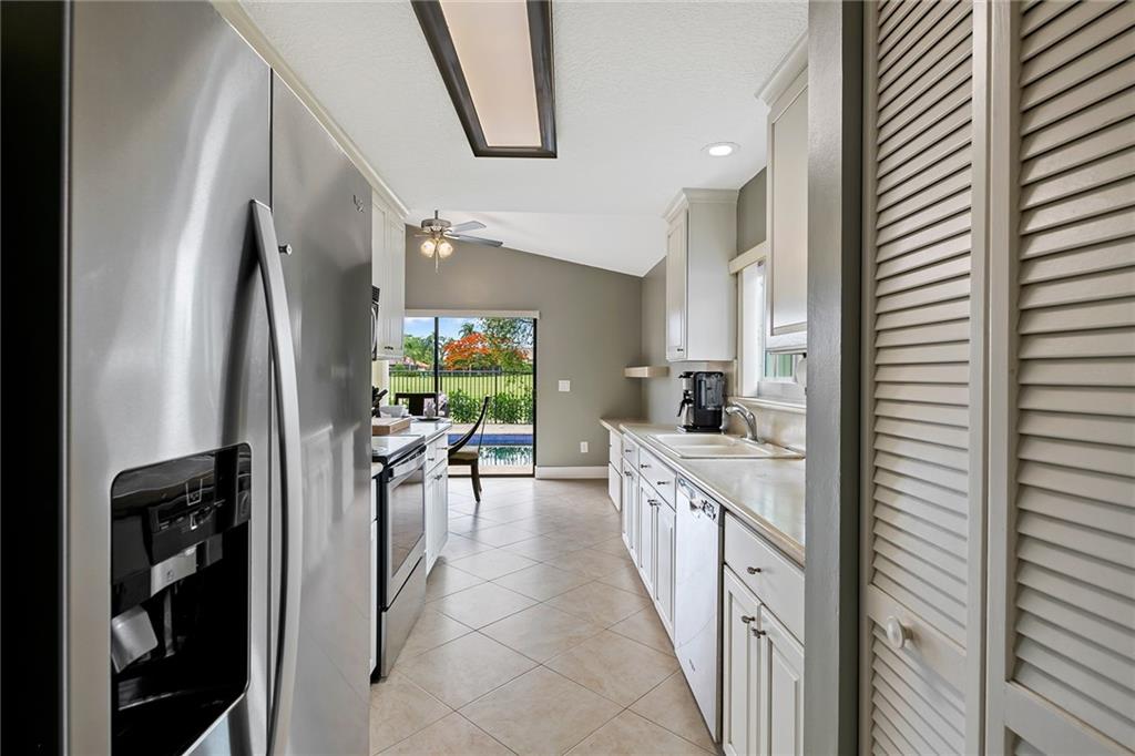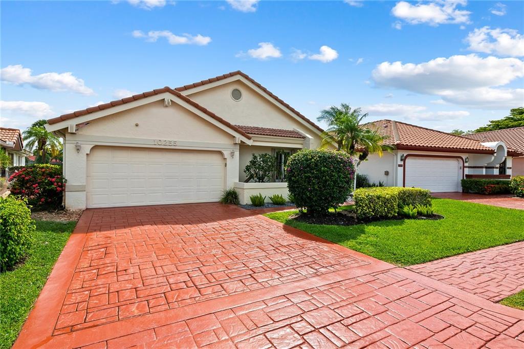 Amazing home in guard gated Boca Woods Country Club. This home features 3 beds, 2 baths, 2 car garage, accordion shutters, newer AC and water heater. Enjoy your outdoor living with pool overlooking the fairways of Lakes #11. Open floor plan, vaulted ceilings, recently painted interior, hi-hats throughout, galley kitchen w/stainless steel appliances. Extension of your family room into the Florida room with movie theater projector, screen, surround sound. Enjoy two 18 hole golf courses, tennis, fitness, pickle ball, bocce ball, dining and lounge. MANDATORY CLUB MEMBERSHIP - $30,000 (refundable when you sell) + non-ref initiation $35,000 (close after Sept 1 initiation goes up $10K). Dues are $16,215+tax/yr + dining, tips, & capital assessment. POA $369/mo includes security, cable, internet.