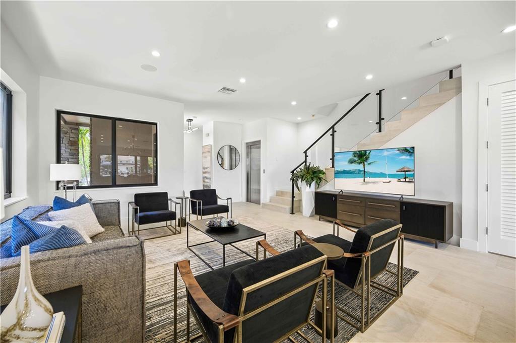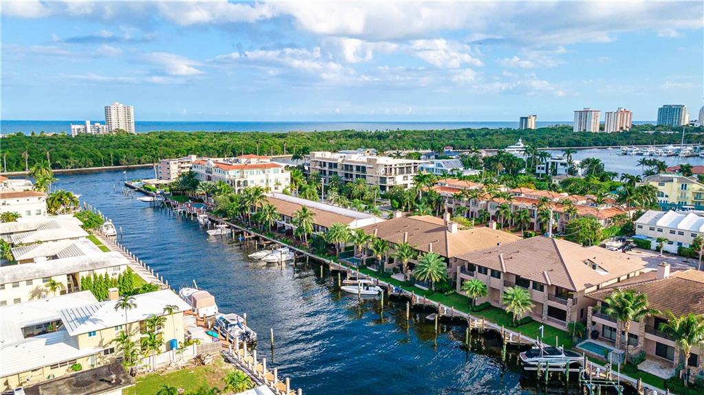 Easy to take care of yet independent NEW Construction waterfront 2-level townhome with private dock for 42' craft, elevator and 2-bay garage with glass door. Corner home with bright sun-lit interiors with high ceilings and walls of sliding doors and windows on three sides. Modern interior has two living areas, porcelain floors, custom cabinets and a wall length buffet, wet bar and media center. The kitchen features seating at both a breakfast bar and the center island. Also Wolf, Bosch and Sub Zero appliances. The second floor landing has a morning bar with sink and fridge. Each bedroom has a bath and generous closet. The Primary bedroom has private balcony and luxury spa bath. Smart home ready with speaker system. Pool ready with pilings already in place.