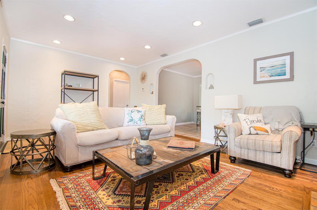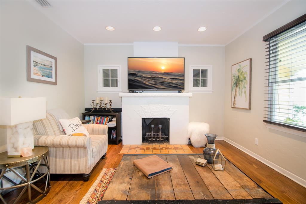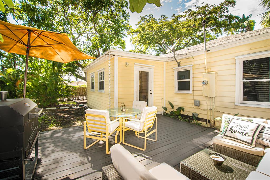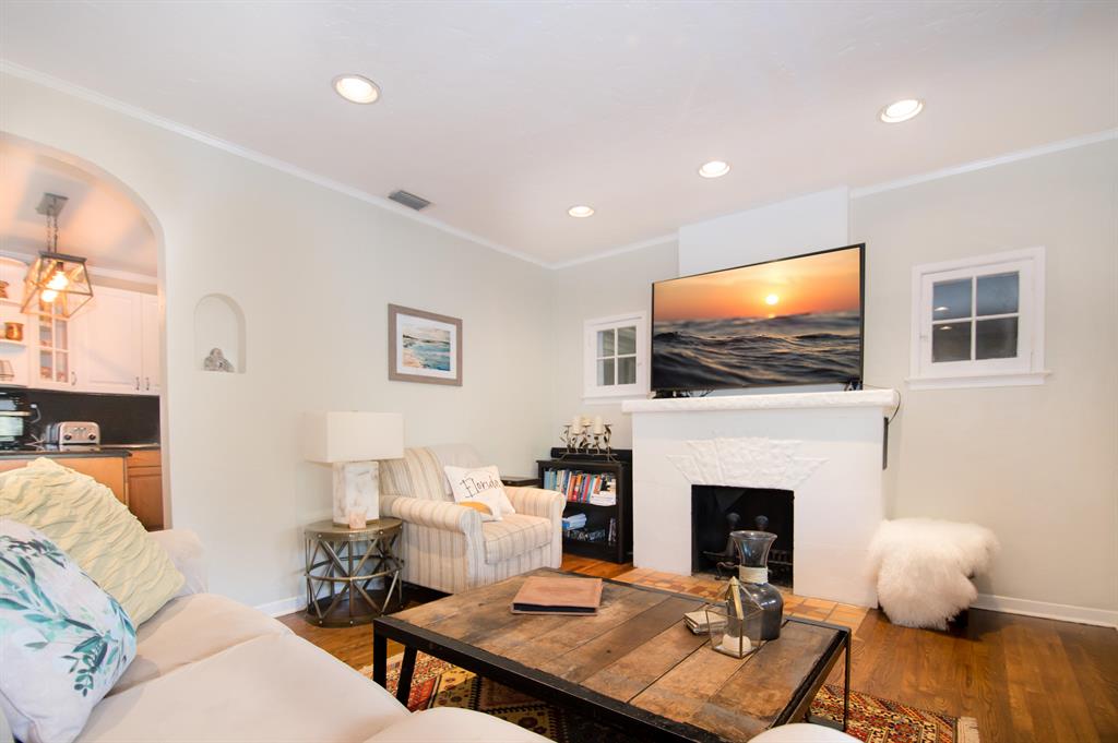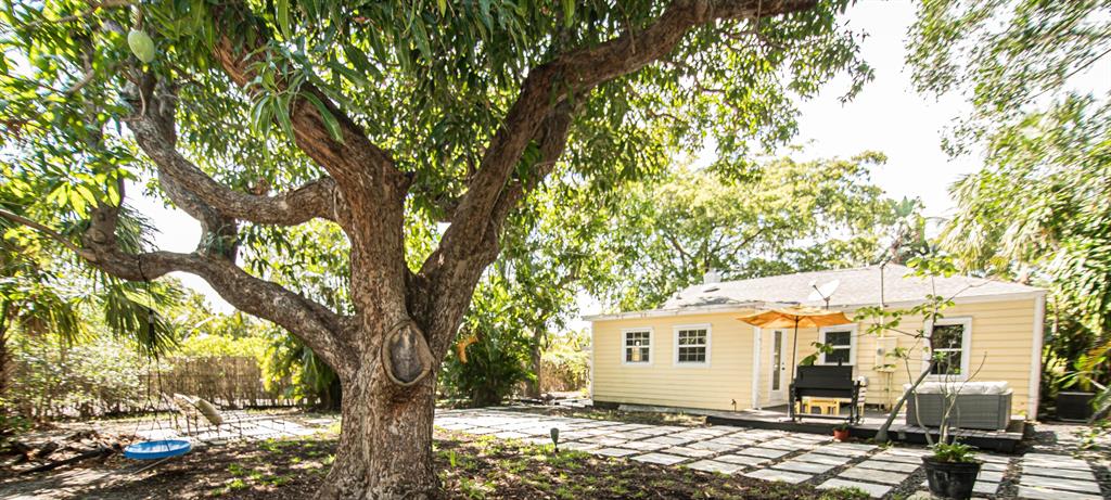 Welcome to this charming, move-in ready, Key West style home. Fully fenced-in, and surrounded by a spacious, lush garden with various trees, you will feel as if you are in your very own secret garden! Situated on a private, corner lot, this home offers: a detached garage, and separate laundry room, along with an amazing outdoor space perfect for entertaining, and spending quality time with family and pets, with room for a pool. As soon as you walk in the freshly painted interior of the home, you feel welcomed by the cozy living room featuring a fireplace, and newly refinished wood flooring and recessed lighting throughout. The kitchen and bathroom were recently renovated, and offer modern features such as: two-tone cabinets, a new backsplash, granite countertops, new appliances, and marble