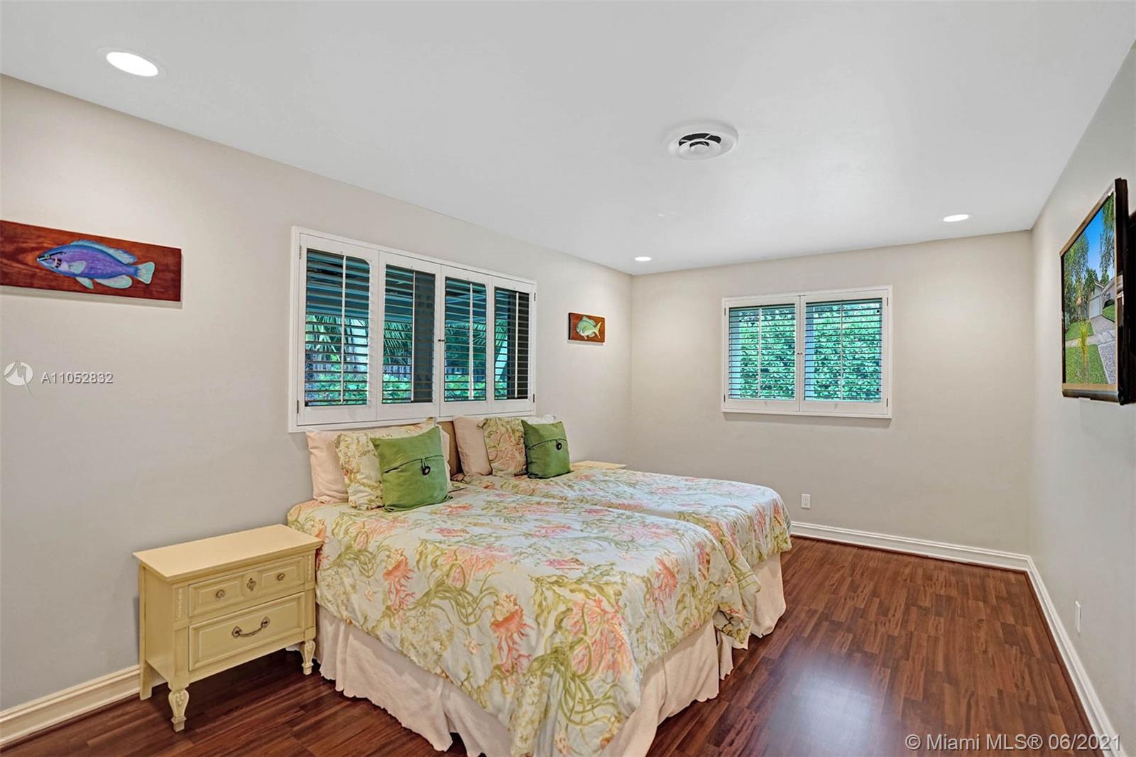 Spectacular home w/ 2-car garage in desirable Hollywood Hills. Open floor plan w/ Pergo flooring, recessed lighting, plantation shutters, high-end finishes throughout. Large kitchen w/ SS appliances (Bosch/Thermador), gas cooktop; double ovens. Two extra-large master suites w/ ensuite bathrooms; custom built closets. Bonus room (den/office). Separate Laundry/pantry (Bosch full size W/D). Brand new 3.5 ton A/C; freshly painted exterior and interior, newer windows, alarm system, large private fenced-in yard; mango tree, lush palms, raised vegetable bed; well irrigation; screened patio w/ cypress wood ceiling & fans (concrete columns makes this easy to convert to third bedroom). Beautifully landscaped & well maintained home. Close to Memorial Hospital, highways, beach and A-rated schools.
