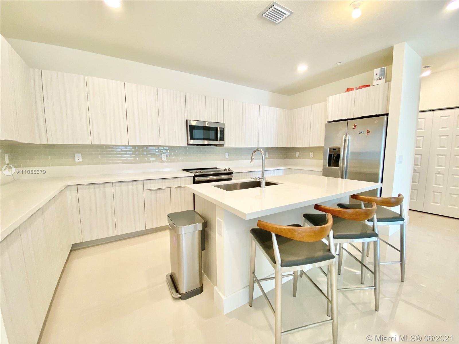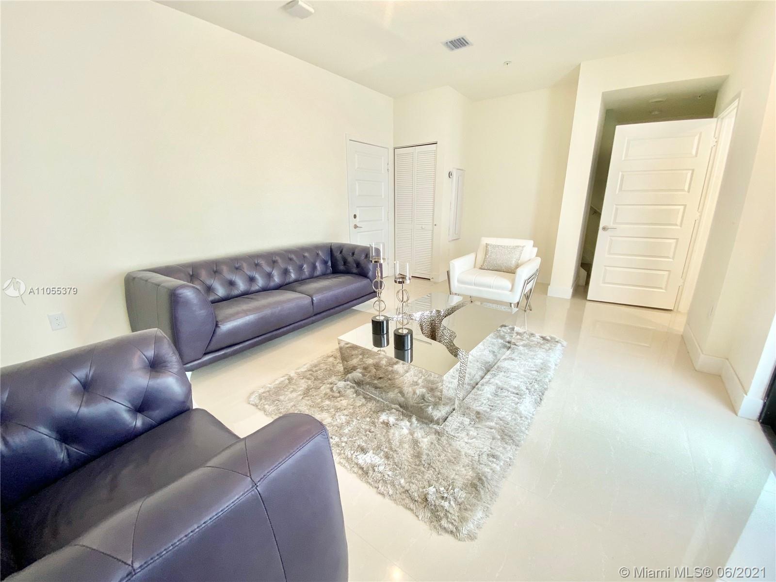 For sale, this stunning corner 4 story Townhome at URBANA Downtown Doral. This Townhome model LB, features 3 bedrooms, 3 baths, 2 powder rooms, a media room, Skyview terrace, with BBQ area, private elevator, 2-car garage, and much more. Enter through the spacious covered entry into the inviting foyer and reception lounge with adjacent powder room. On the opposite wall, a door leads to the 2-car garage, while on the west side of this space both a stairway and elevator provide access to the other floors. Second floor dining room and kitchen overlooking an expansive balcony. Third floor is occupied by the luxurious owner's suite, bedroom 2 and its private bathroom; and a laundry closet. Fourth story, entertainment area, Room 3, covered terrace with BBQ Area, and full bath. READY TO MOVE IN.