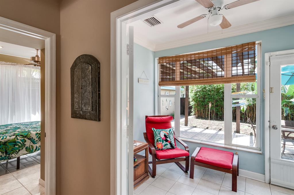 Family Home, Vacation Home, Vacation Rental or all of the above! Three bedroom 2 bath main house / 1 bedroom one bath private guest quarters. Prime location at the North End of Flamingo Park. One Block from the dog park. Three blocks from Dixie hwy to the East. Three blocks to Grandview Public Market to the West. This home has an open layout from indoor living spaces to a large back yard covered in pavers (space for pool). An extremely rare find to have an updated concrete block house, en suite master, and guest quarters with private entrance. Inside you will find all the charm of the area with original oak floors and fireplace but also a large updated kitched. Property can be purchased turn key as a vacation rental with management in place. Property will be held open 6/16 through 6/19.