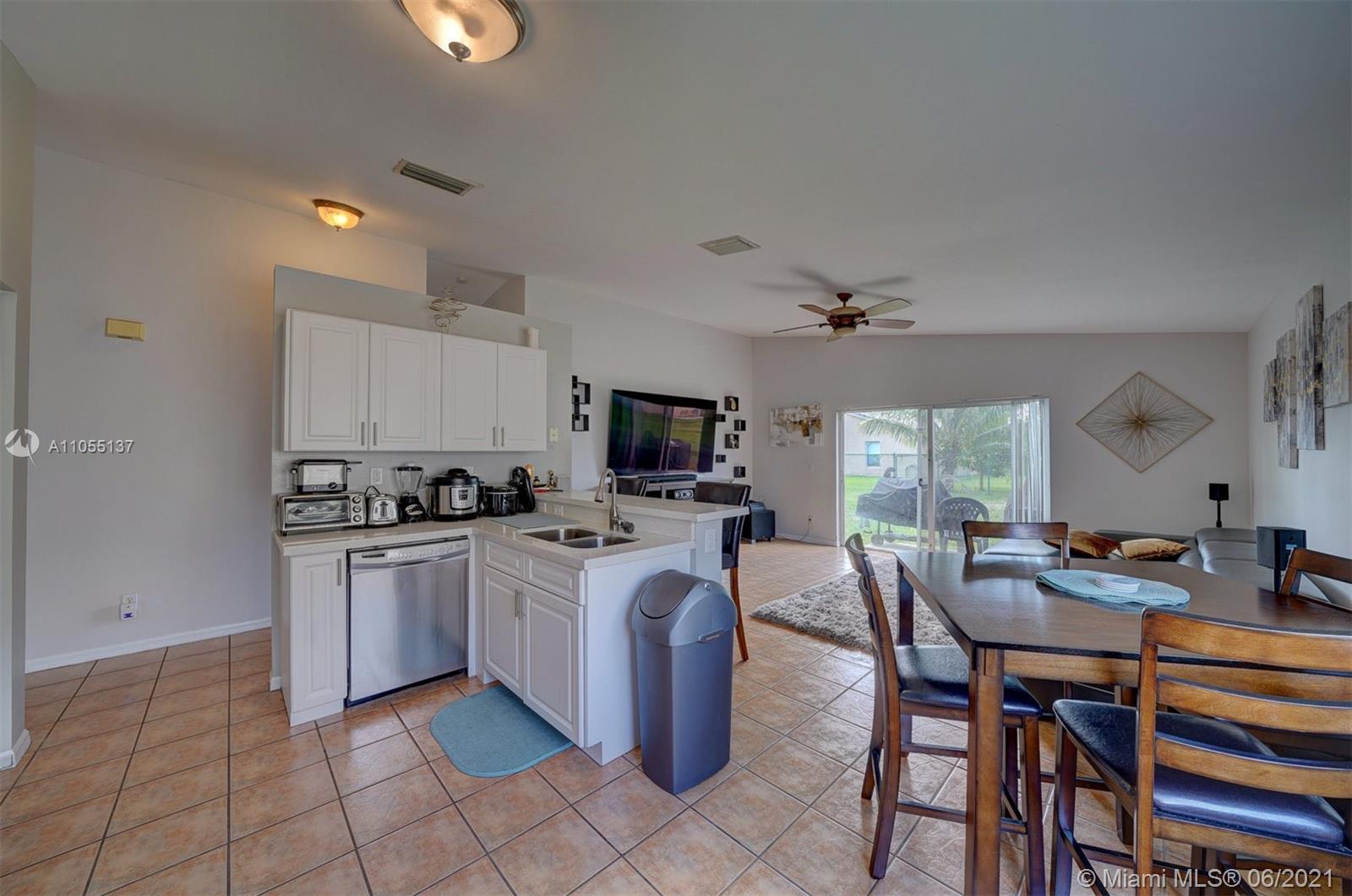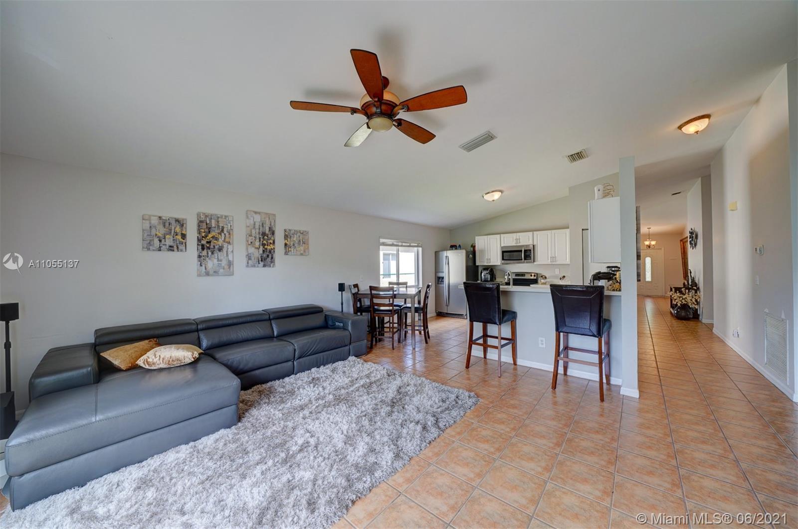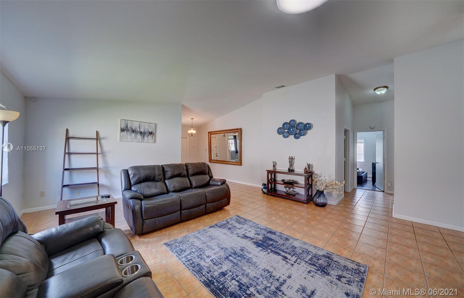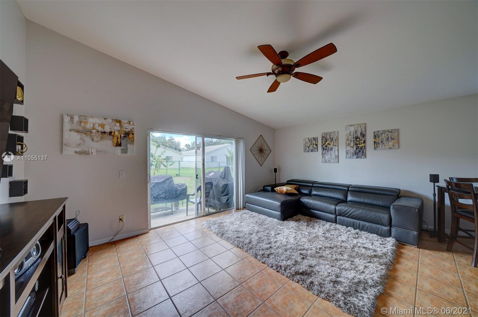 Beautiful 5/2 in the heart of Miramar! Gated community with security. Quartz kitchen countertops, new SS appliances & new white cabinets, with tile throughout the house and laminate wood floors in each room. A+ school zone! AC was replaced in 2015, also comes with an alarm system with a Comcast account. Two security cameras on site that covers front and backyard. Large, gated backyard with avocado and banana tree. Amenities include the pool & security. This property will not last long! Come view this lovely, single family home today!
