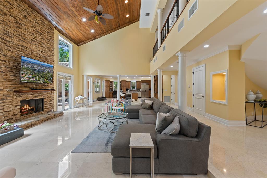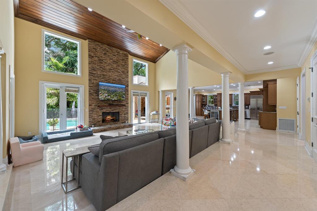 Large private estate in historic Colle Hammock minutes from Las Olas Blvd. 5 bedroom, 5 bath, 2 powder room. Cherry wood/marble floors/granite counter tops. Huge island in kitchen connected to living room. Open floor plan. Private dining room connected to sitting room. Florida room screened in and remote controlled/built in grill and summer kitchen connected to private guest cottage with full bath. Heated Pool. Mature landscaping provides complete privacy. Generator. Skylight. Wood ceilings. Fire places inside and out. Parking by permit only in neighborhood. Streets closed to through traffic during most city events. Walk to beautiful waterfront parks. 15 min walk to beach on Las Olas. Tenant occupied until September. Amazing property and a must see!