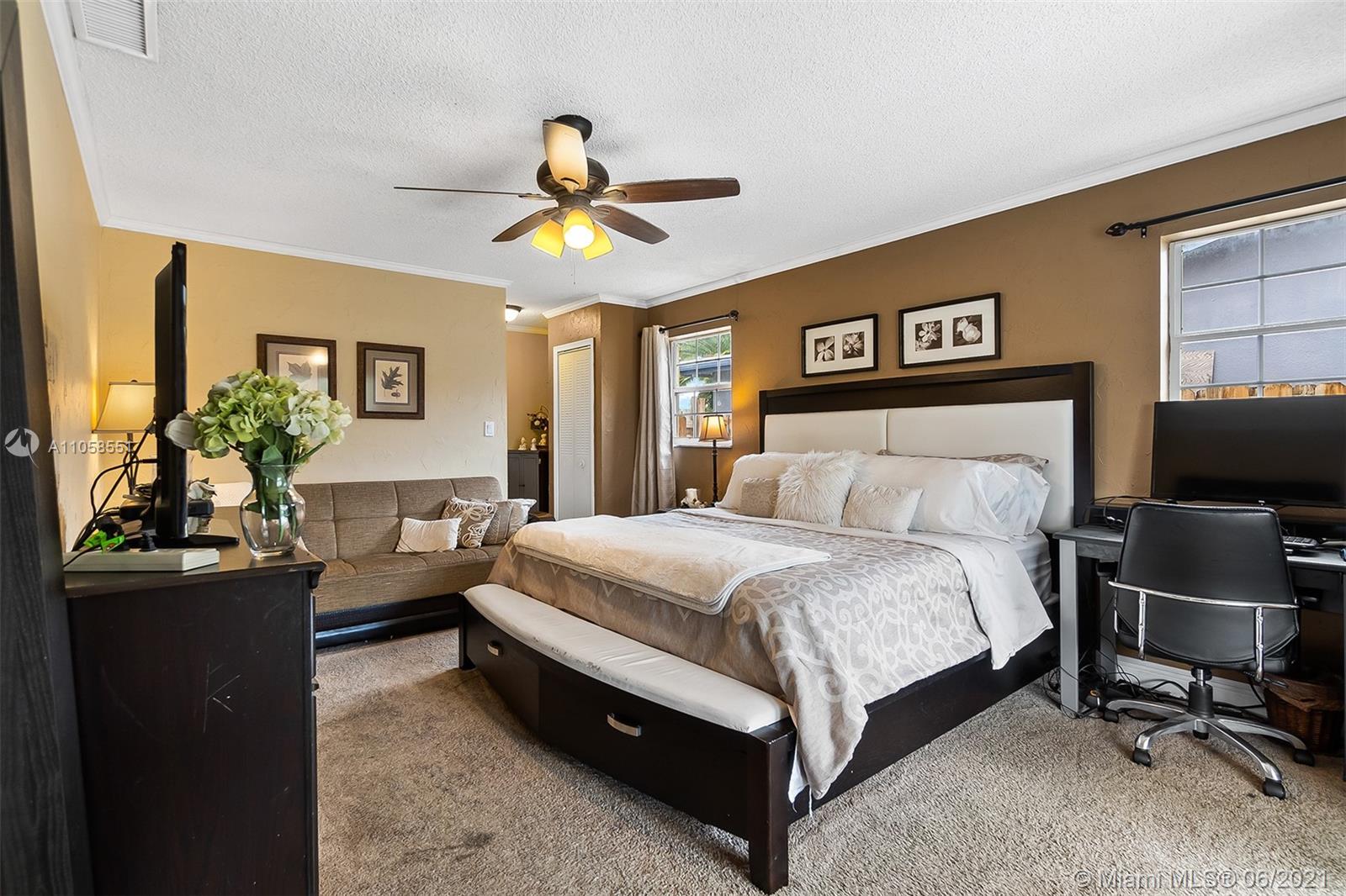 This is the one! 5 bedroom 2.5 bath pool home w/ 2 car garage in desirable Sunrise Golf Village. As you pull up to the property, the convenience of the circular driveway gives you plenty of parking options. Walk up to the covered entry and open the main door to a spacious foyer, powder room and garage access conveniently located close by. Renovated kitchen with stainless steel appliances opens to the family room and dining area. Sliding doors open to a serene patio overlooking the pool area. Massive backyard offers lots of privacy. Split floorplan has the main bedroom w/ huge walk in closet next to the living room, while the remaining 4 bedrooms and cabana bath are on the opposite side of the home. Centrally located close to highways and shopping. See this beautiful home before its gone!