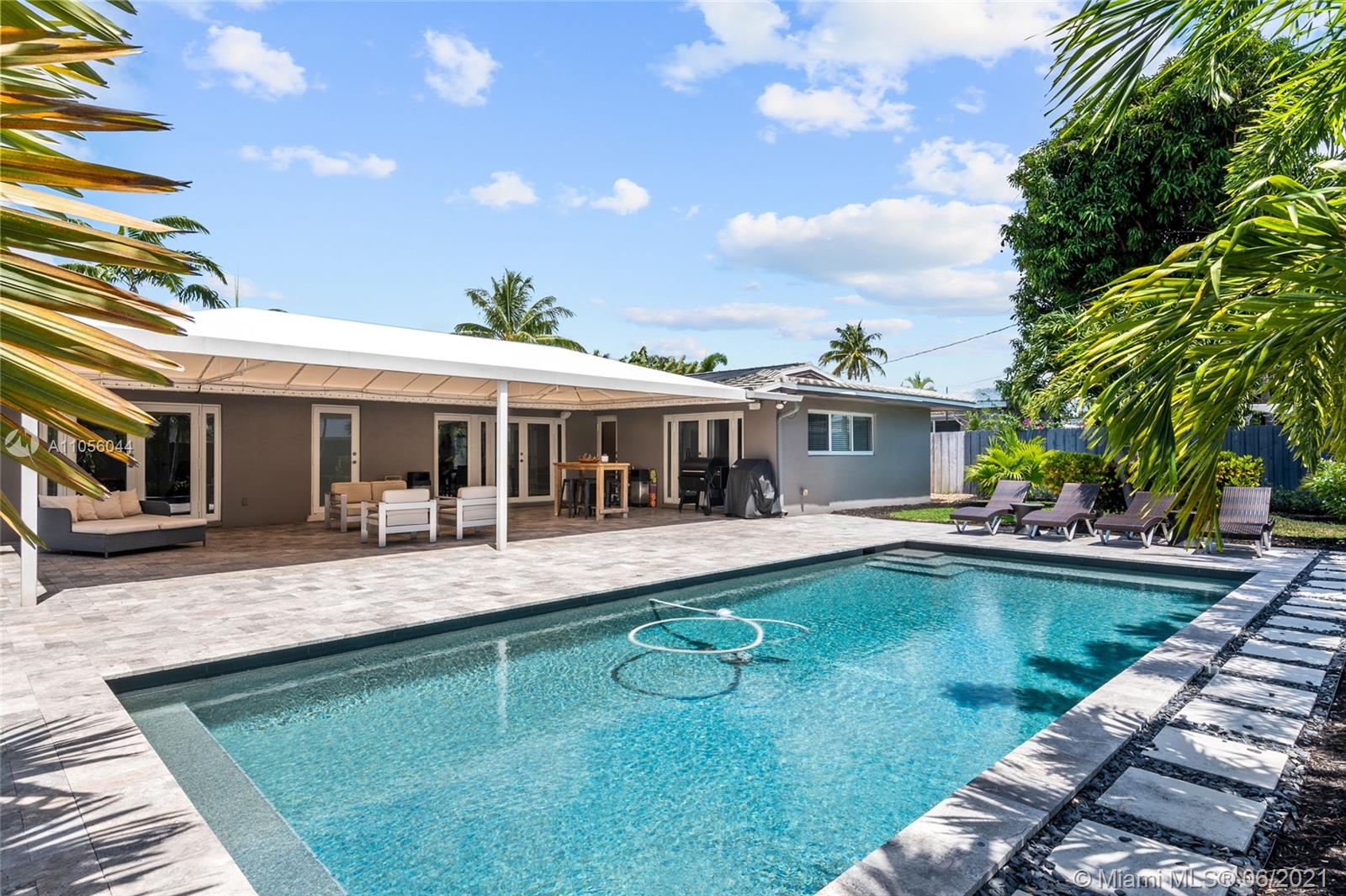A One-of-a-kind Mid-Century Home in a very desirable neighborhood! With 1,552 sf of living space, perfect for entertainment. Expansive outdoor space with massive pool, pergola, and gorgeous landscaping. Recently updated with new flooring, new washer and dryer, updated bathrooms, new air conditioner, impact doors and windows! Enjoy over 10,640 sf of resort-style living in the comfort of your own home. Close to all shops, restaurants and the beach! Showings start on Friday, June 18th, 11:00AM - 1:00PM.