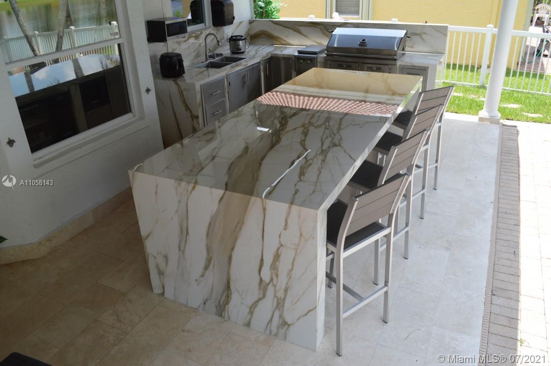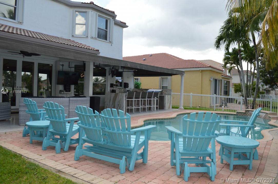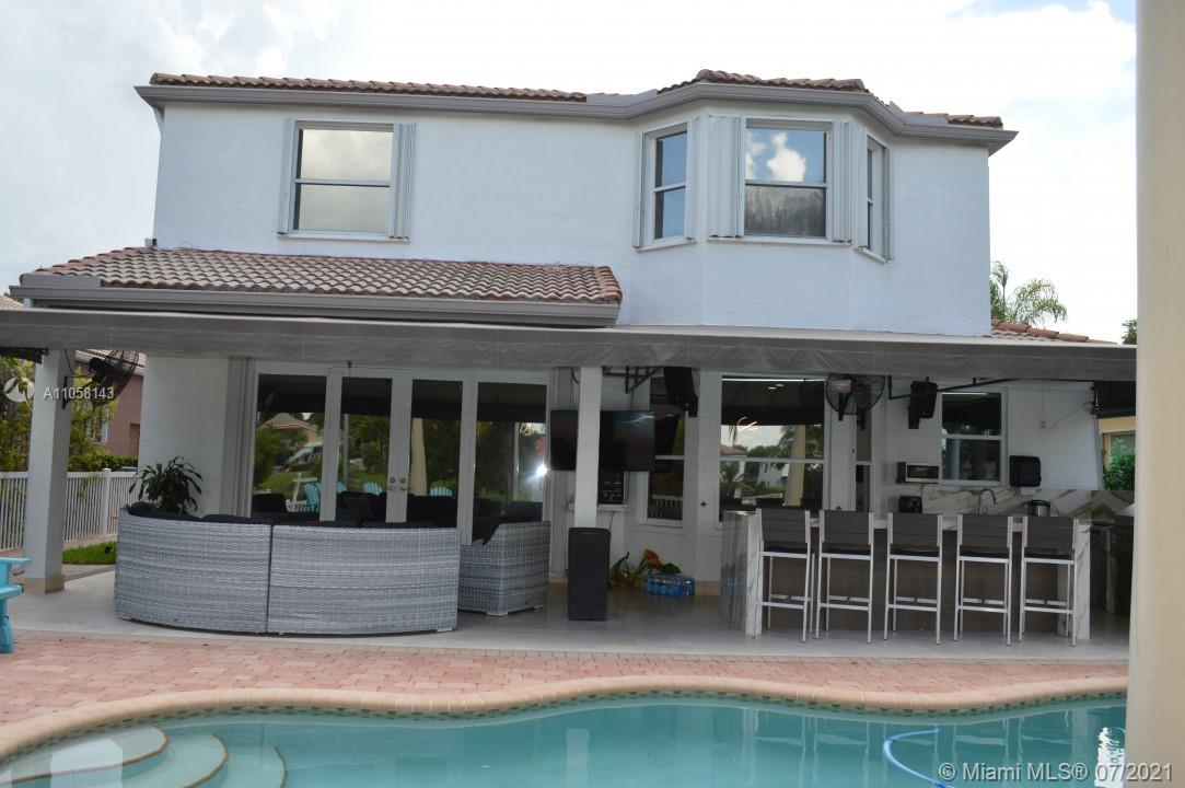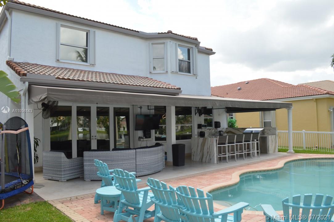Gorgeously renovated lakefront home in one of the most sought-after resort-style living communities in Miramar. This property is in the subdivision of Ravello within Riviera Isles. The Property is 2860 square feet and has been renovated with utmost care. This beautiful 5-bedroom 2.5-bathroom home is fenced. It has heated salted pool. Spacious kitchen with built in banquette along bay window with all stainless-steel appliances. Brand new porcelain tile (24x48) floor downstairs. Brand new AC with 10 years warranty. Generator and custom electric installation to switch from FPL service to the generator in case of outages(hurricanes), accordion shutters through the house. Large steam-clean washer and dryer with custom cabinetry, new state of the art compact water heater