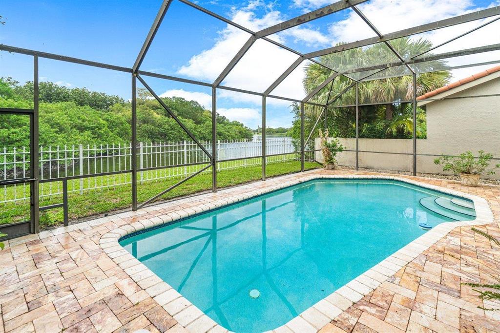 Make your appointment today and come to see this Elegant 3 Bedroom 2.5 Bathrooms 2 Car garage. Upon entering you are welcomed by tall ceilings, and a view to the back and and the gorgeous pool surround by a travertine pool deck with a screen enclosure and a beautiful water view. The kitchen is updated with beautiful wood cabinets, granite countertops and stainless steel appliances. Off the kitchen is a bright atrium and courtyard where you can have a water fountain or grow some vegetables/herbs, etc. The floors are tiled throughout the main areas and laminate in the bedrooms. Click on the tour link and come view the home today.