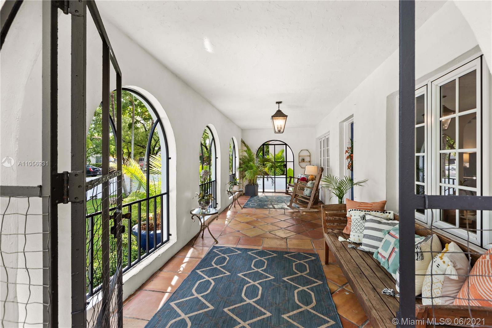 Spectacular classic old gables Spanish with hugh Florida porch. Immaculately restored, 3-bedroom, 2-bath home with gorgeous wood floors, fireplace and archways. This home has beautiful Tule-work and has the bones to stand strong for future generations to enjoy. New roof with TPO insulation, impact windows, new AC, great Florida room, lot of storage and walled yard. Great kitchen with a large pantry and plenty of storage. Walk to your favorite restaurants in downtown Coral Gables! This home is going to sell fast.