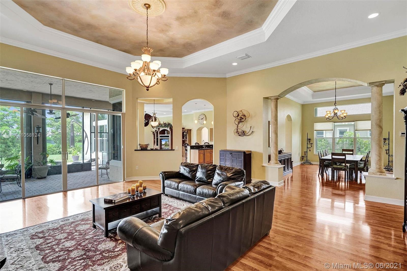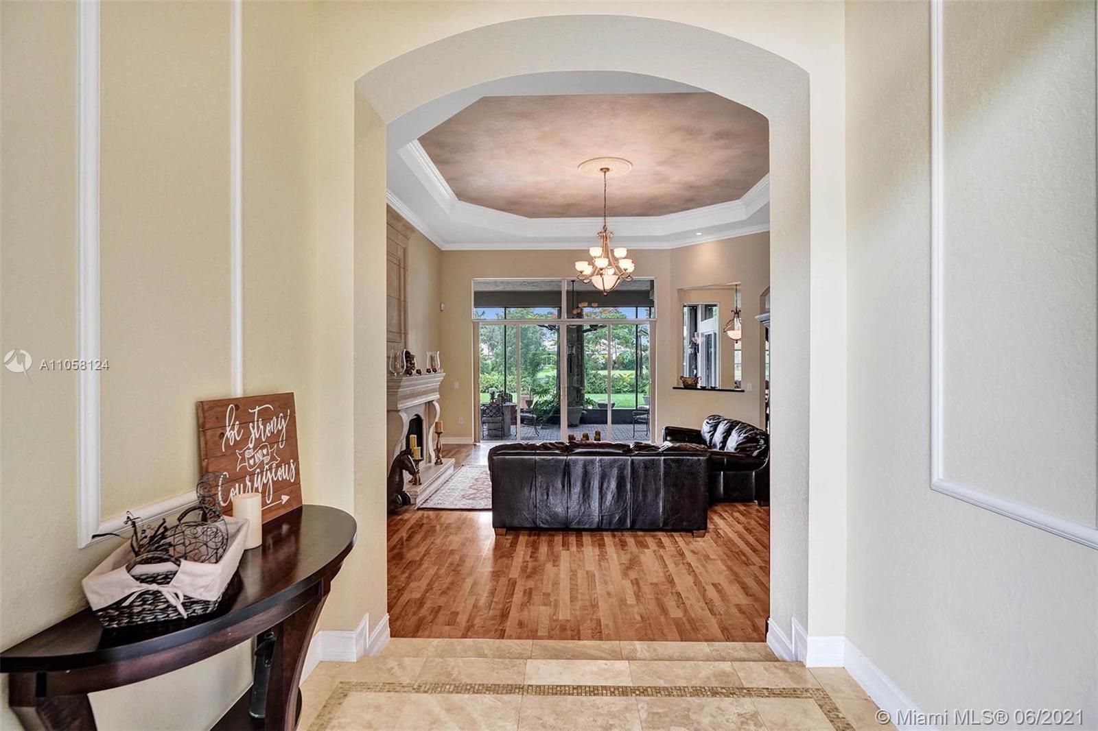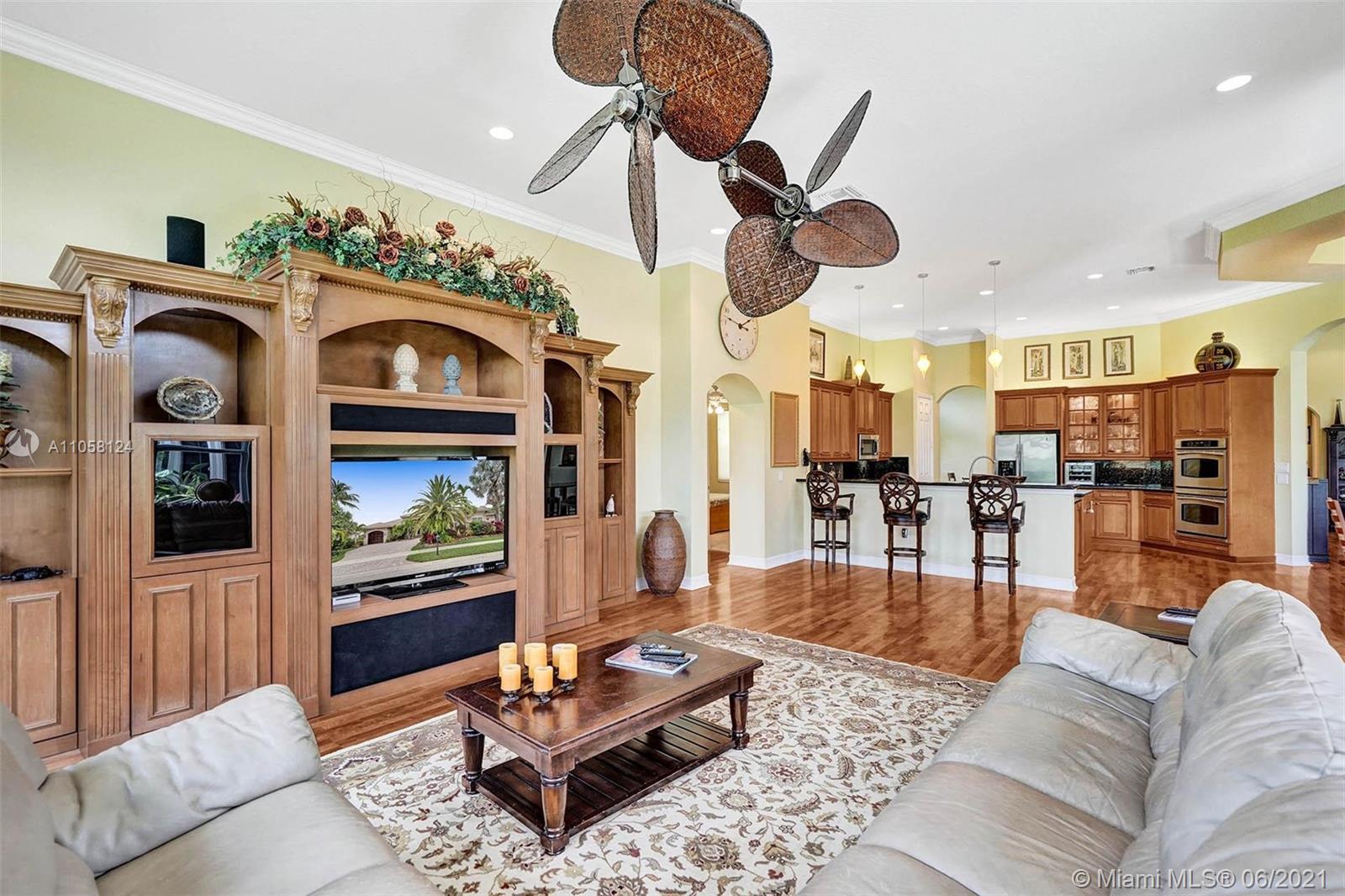 Stunning custom home situated on a builder's acre lot in the beautiful gated community of Riverstone offers 5bd/4.5ba+den+bonus room,3 car garage.This custom dream home has a grand foyer entry leading into a bright open living room with volume tray celling,fireplace and formal dinning room.The home offers a 3 bedroom split plan with a spacious master bedroom suite with his/her bathroom,wood floating flaques flooring ,crown molding throughout the home,closet organizer in bedrooms and garage system organizer in one car garage.Home features a large kitchen with stainless steal appliances,upgraded wood cabinets,center island overlooking the family room.Enjoy outdoor living in the large screened enclosed covered patio or extended paver outdoor patio with lush landscaping and tranquil water view