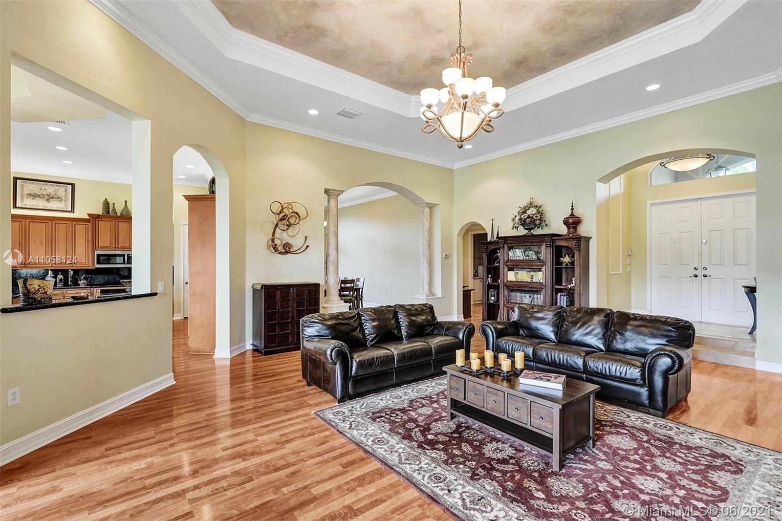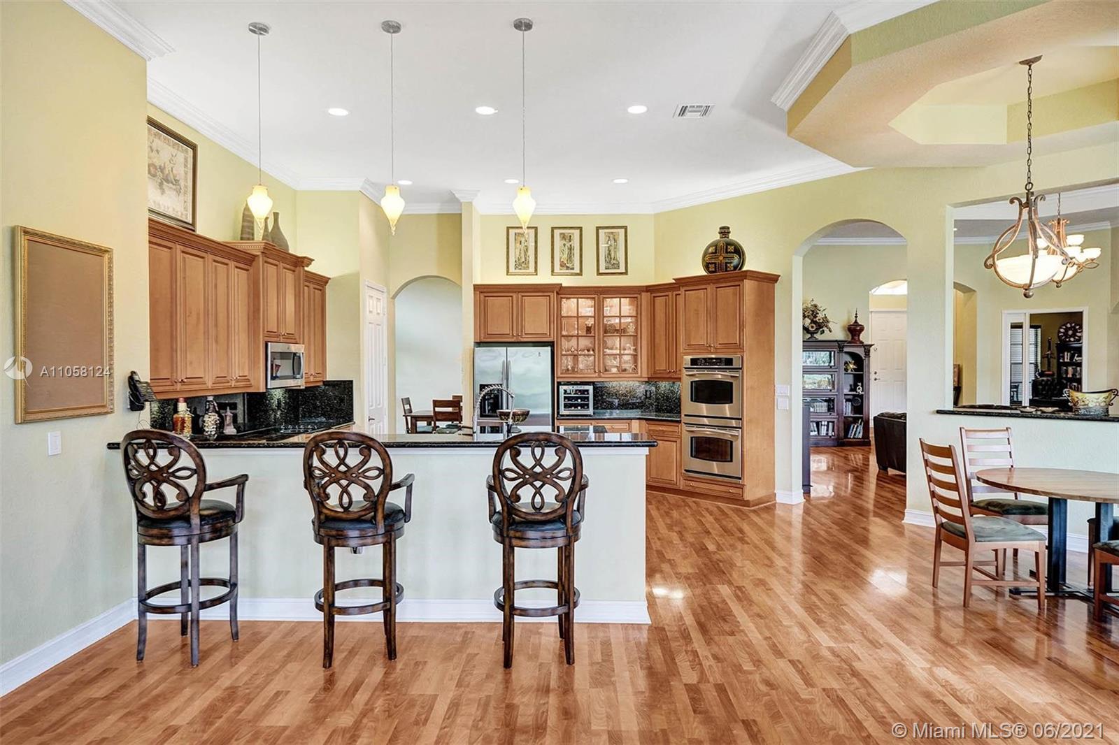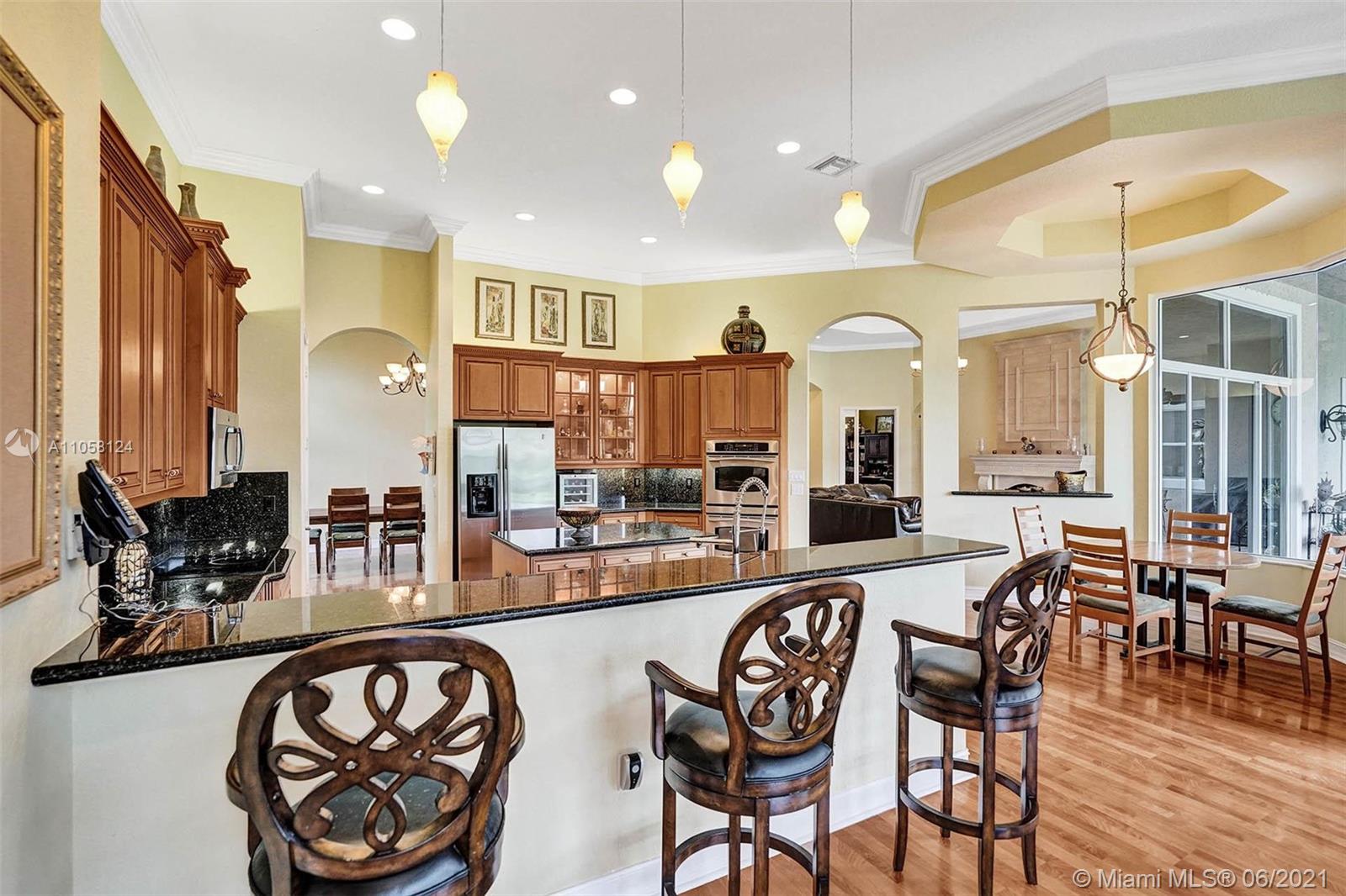 Stunning custom home situated on a builder's acre lot in the beautiful gated community of Riverstone offers 5bd/4.5ba+den+bonus room,3 car garage.This custom dream home has a grand foyer entry leading into a bright open living room with volume tray celling,fireplace and formal dinning room.The home offers a 3 bedroom split plan with a spacious master bedroom suite with his/her bathroom,wood floating flaques flooring ,crown molding throughout the home,closet organizer in bedrooms and garage system organizer in one car garage.Home features a large kitchen with stainless steal appliances,upgraded wood cabinets,center island overlooking the family room.Enjoy outdoor living in the large screened enclosed covered patio or extended paver outdoor patio with lush landscaping and tranquil water view