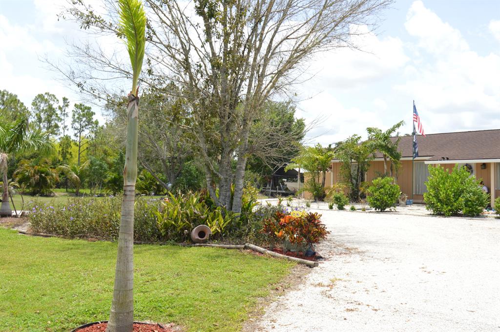 Over 1.25 acres, meticulously maintained, 3 bedroorm 2 bath with plenty of room to expand and zoning to allow horses, chickens and more! A beautiful country setting close to shopping and amenities. Very close to wildlife management areas. Fully fenced, and borders a canal on one side and large palms and Clusia providing privacy along all sides of the property. Two large gates on either side of the circular drive. One gate is remote operated. Room for a pool! Bring your RV, Boat, Horse Trailer, work vehicles, gardening skills and more! Amazing opportunity to own this home with few restrictions and room to build out and expand!
