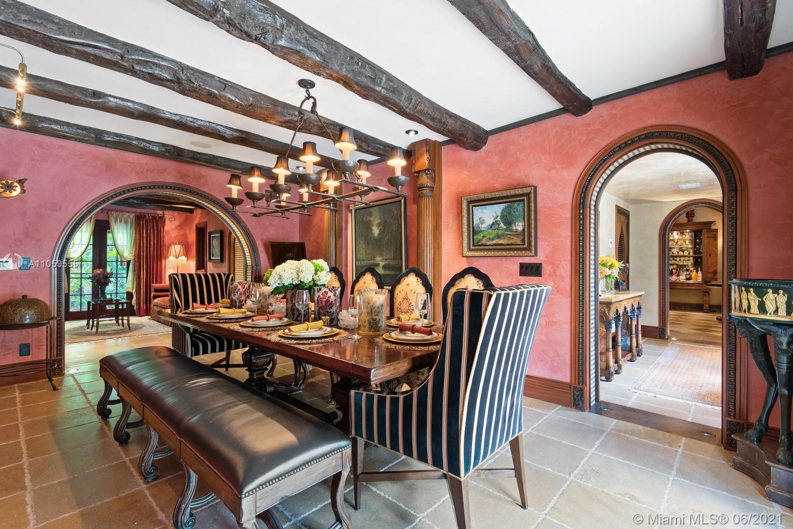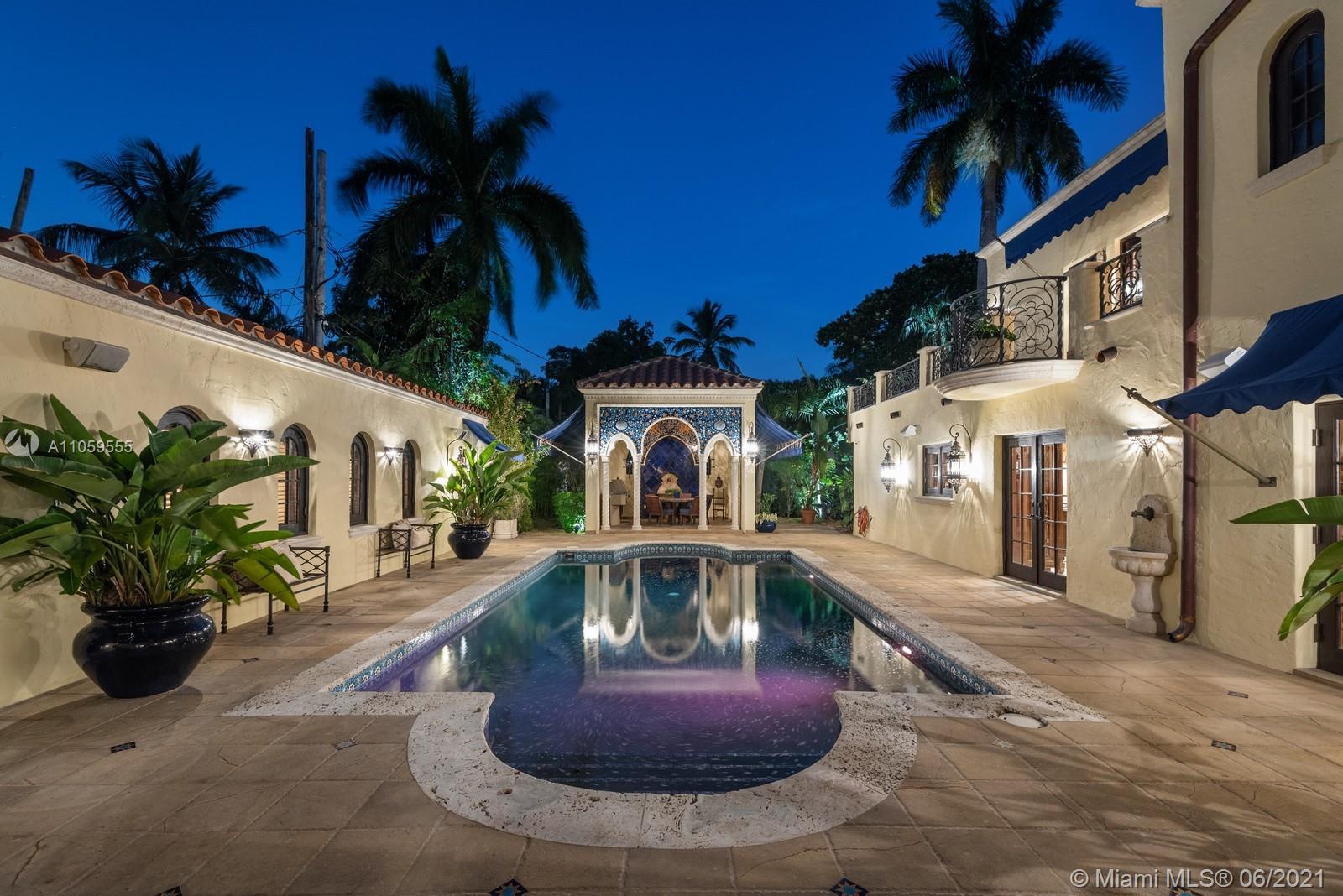 Spectacular Property Heart of Historical Coral Gables! Masterpiece with intricate layers attention to details. Stainless Glass, iron work, wood beams. Corner lot 26,375 SF. Gated West Granada entrance circular mosaic stone driveway fountain. Gated South entrance driveway & garage. Breathtaking Gardens. Coral Rock Grotto, two Koi ponds & waterfall. Lighting, Generator, Loggia, Pool, Gazebo & BBQ. Interior STUNNING! Six Bedrooms five Bathrooms two Half Baths & Gallery. High ceilings, ceiling wood beams, two fireplaces, Venetian Plaster & textured paint through out, wood arches mosaic tiles. Basement movie theatre & wine cellar. Walk to Historical Biltmore Hotel Golf & Tennis, Venetian Pool, Miracle Mile, Granada Golf Course, De Soto Fountain. Amazing Elements make this a Blissful Property!