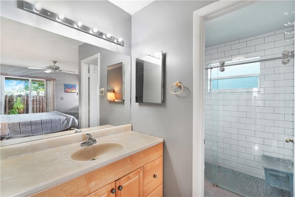 MAKE THIS ONE YOUR HOME...Beautiful 3 bedroom, 2 bath home. Completely remodeled kitchen featuring stainless steel appliances and quartz countertops. Master shower remodeled. AC-1 yr old. New tile floors in main living areas. Vaulted Ceilings, Partial Impact Windows and Impact Garage door. Smart Locks and Nest Thermostat will convey. Fenced and private backyard with covered patio. No rear neighbors. Very low HOA fees at only $175.00 per quarter. Community Pool. This home will not last.