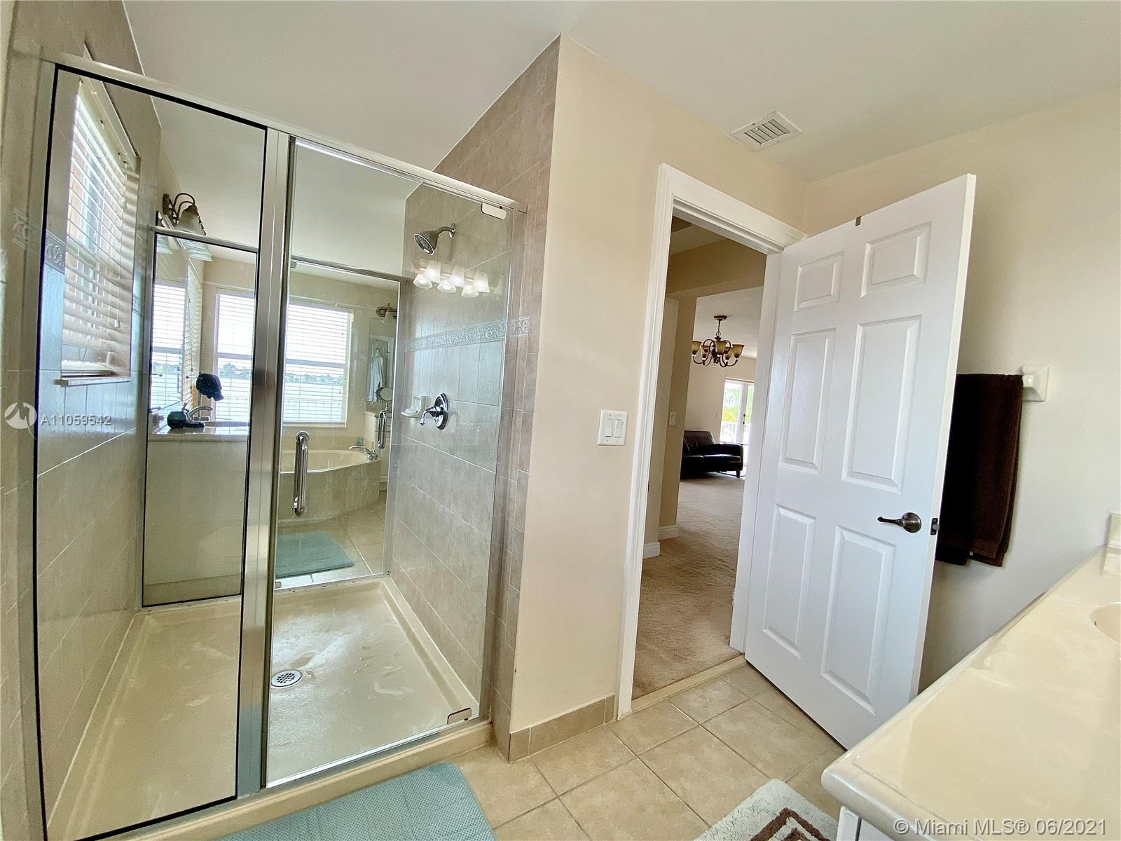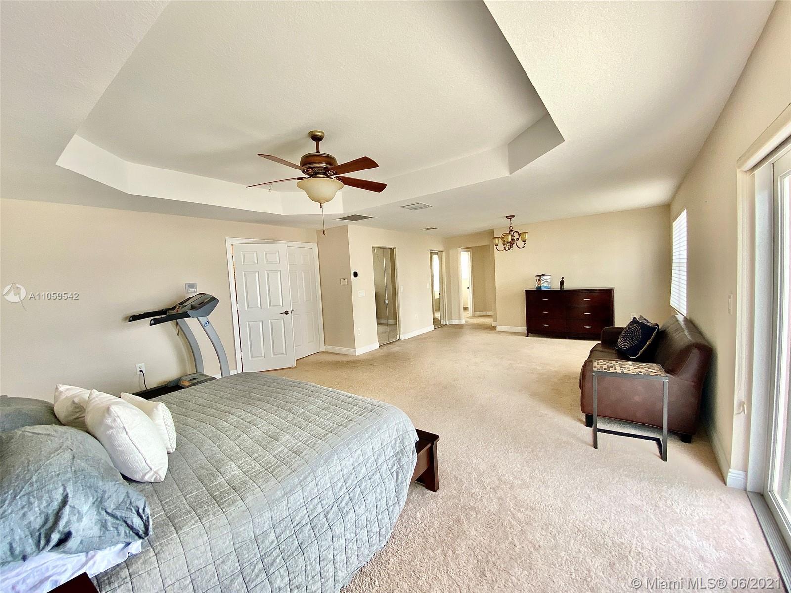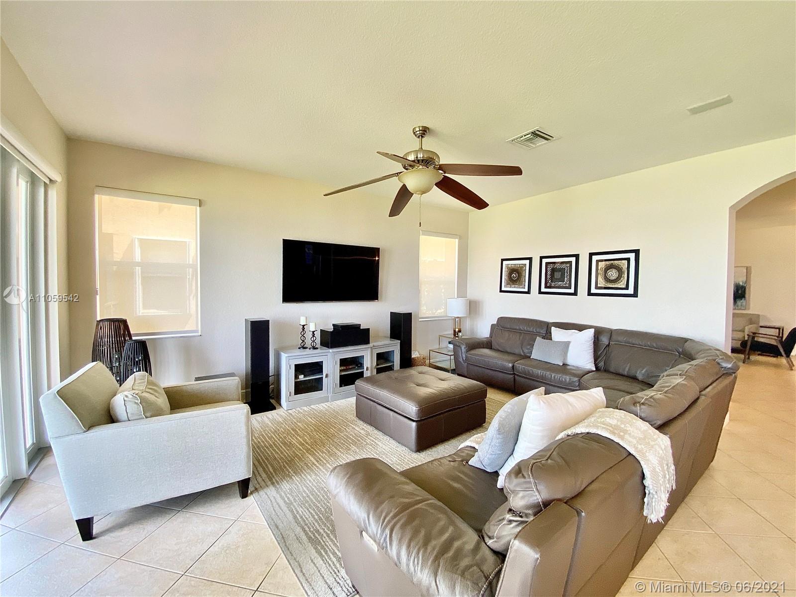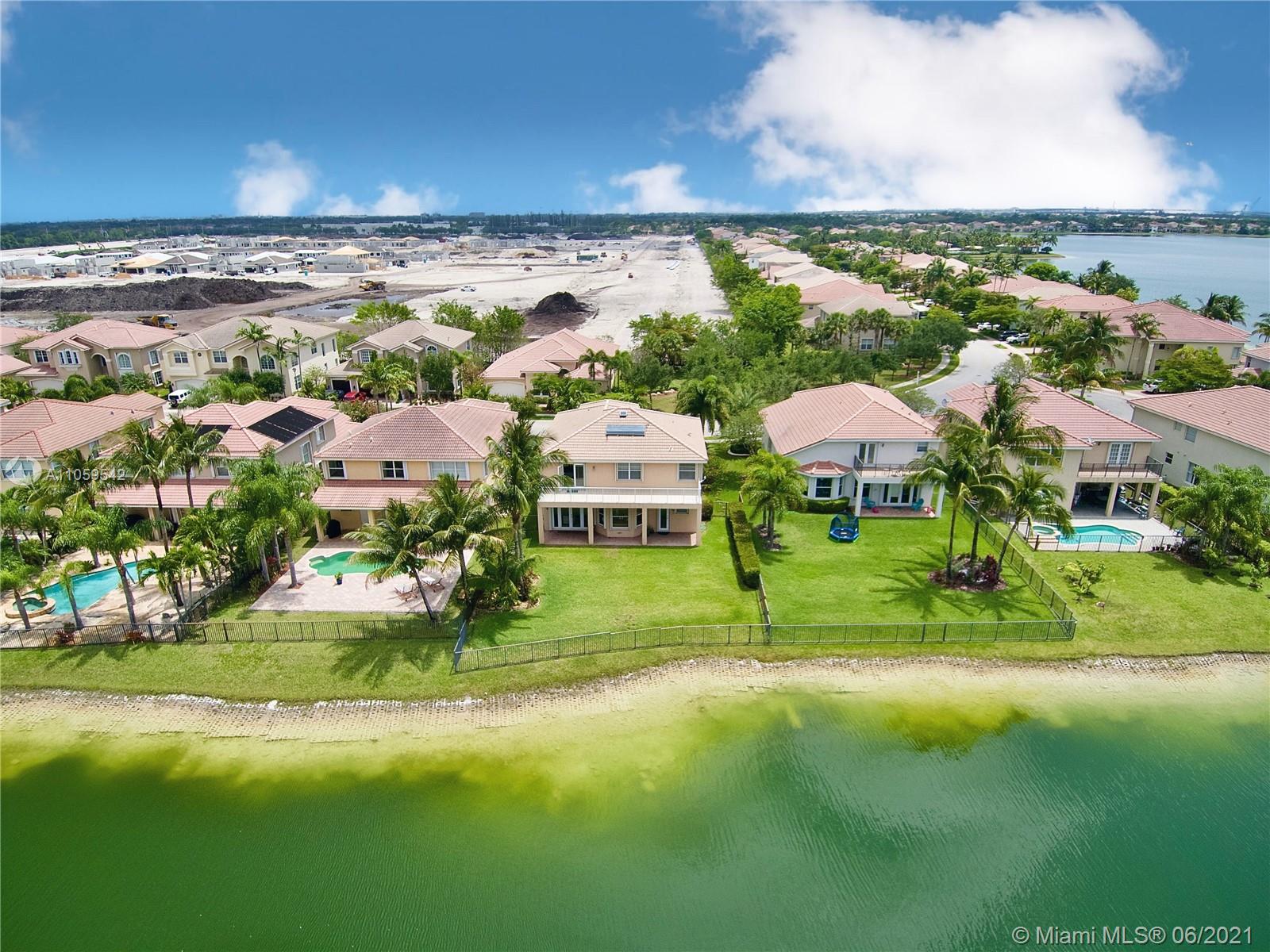 Spectacular 2 story waterfront property located in the exclusive gated community of Sunset Falls. Upgraded open concept kitchen with quartz countertops and bay window with built-in bench seating breakfast area. Hunter Douglas electric shades on first floor. Separate laundry room on second floor. In-laws suite and playroom on first floor. Four bedrooms upstairs. Very spacious master bedroom on second floor with balcony and Lakeview. Separate double shower and dual sink in master bathroom. Very large patio with view to the lake and space for a pool. Solar panels installed. Great amenities including tennis courts, basketball courts, swimming pool, kids playground, and gym. Excellent secluded location very close to I-75, schools, shopping, and restaurants.