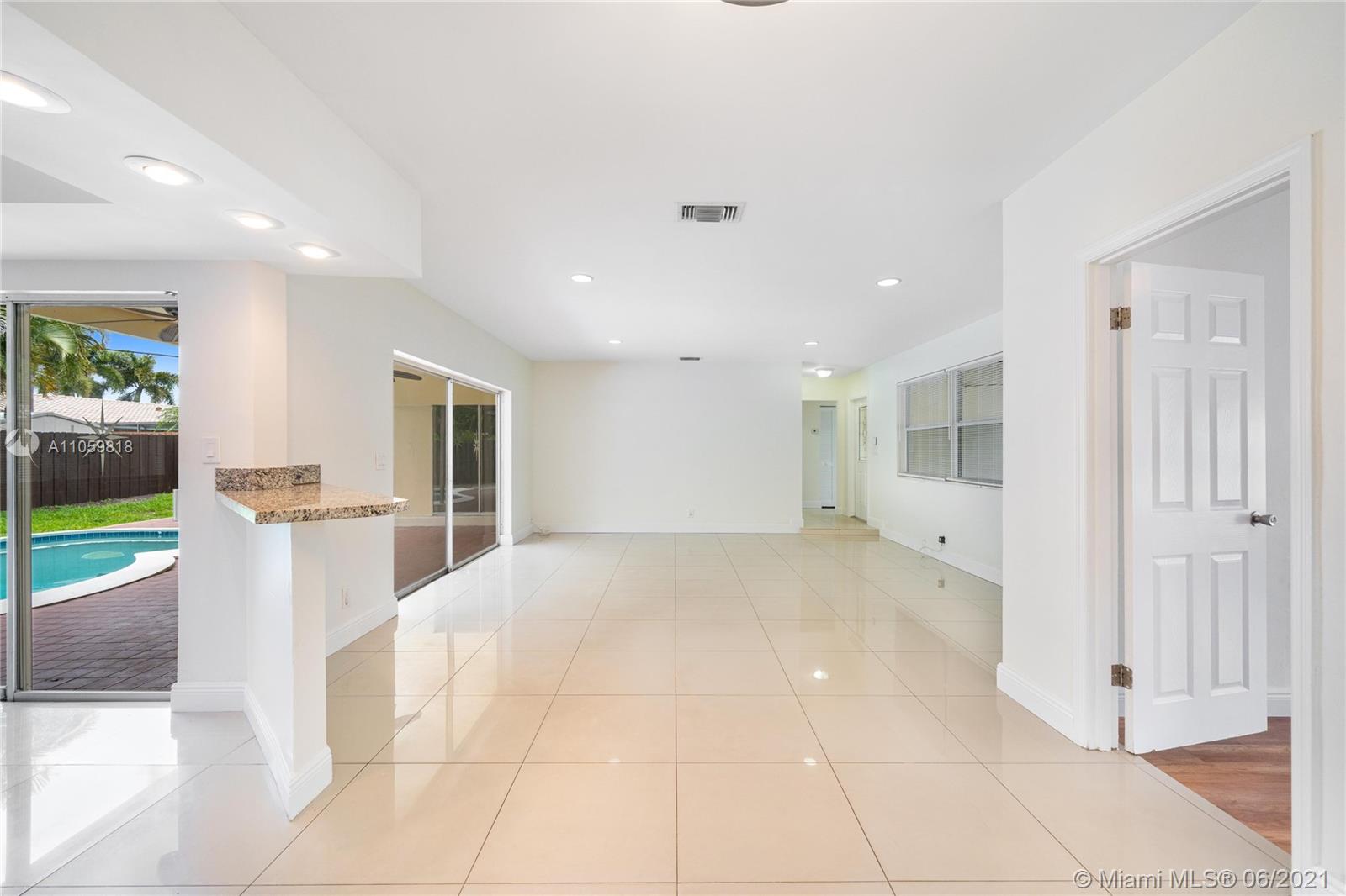 Gorgeous 4 bed / 2 full bath home with pool located in East Fort Lauderdale at Imperial Point. Featuring a fenced backyard with a a swimming pool, this beautiful home comes with porcelain tile floors, spacious bedrooms with ample closets, kitchen with granite counter top, stainless steel appliances and wine cooler. Covered patio overlooking the backyard and pool. Open floor plan with lots of natural lighting. Home also has a circular driveway with plenty of parking space. Convenient location just a short distance to grocery stores, banks, restaurants and minutes away from the beach. Virtual tour available.
