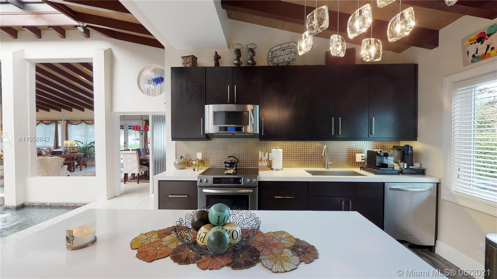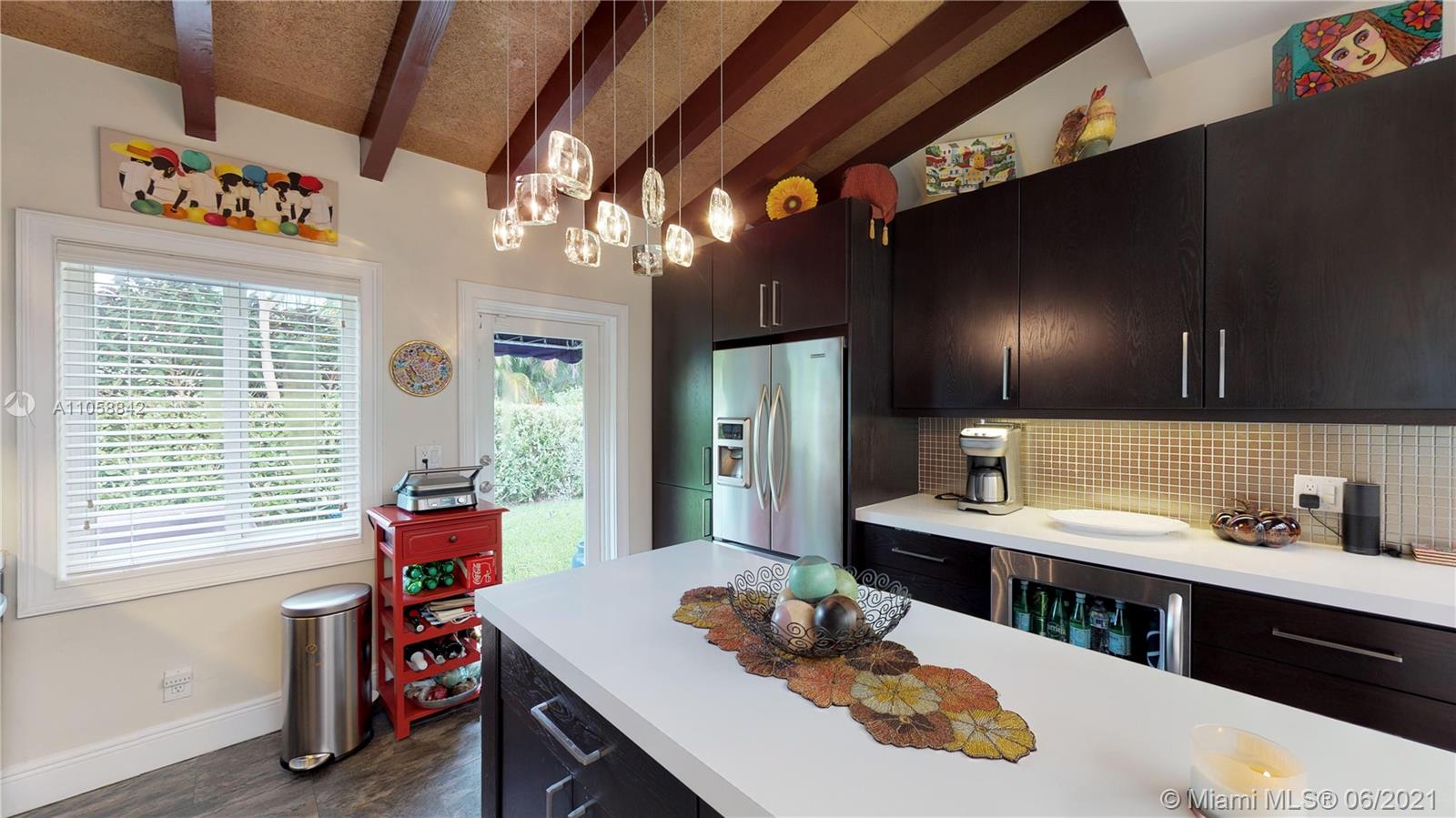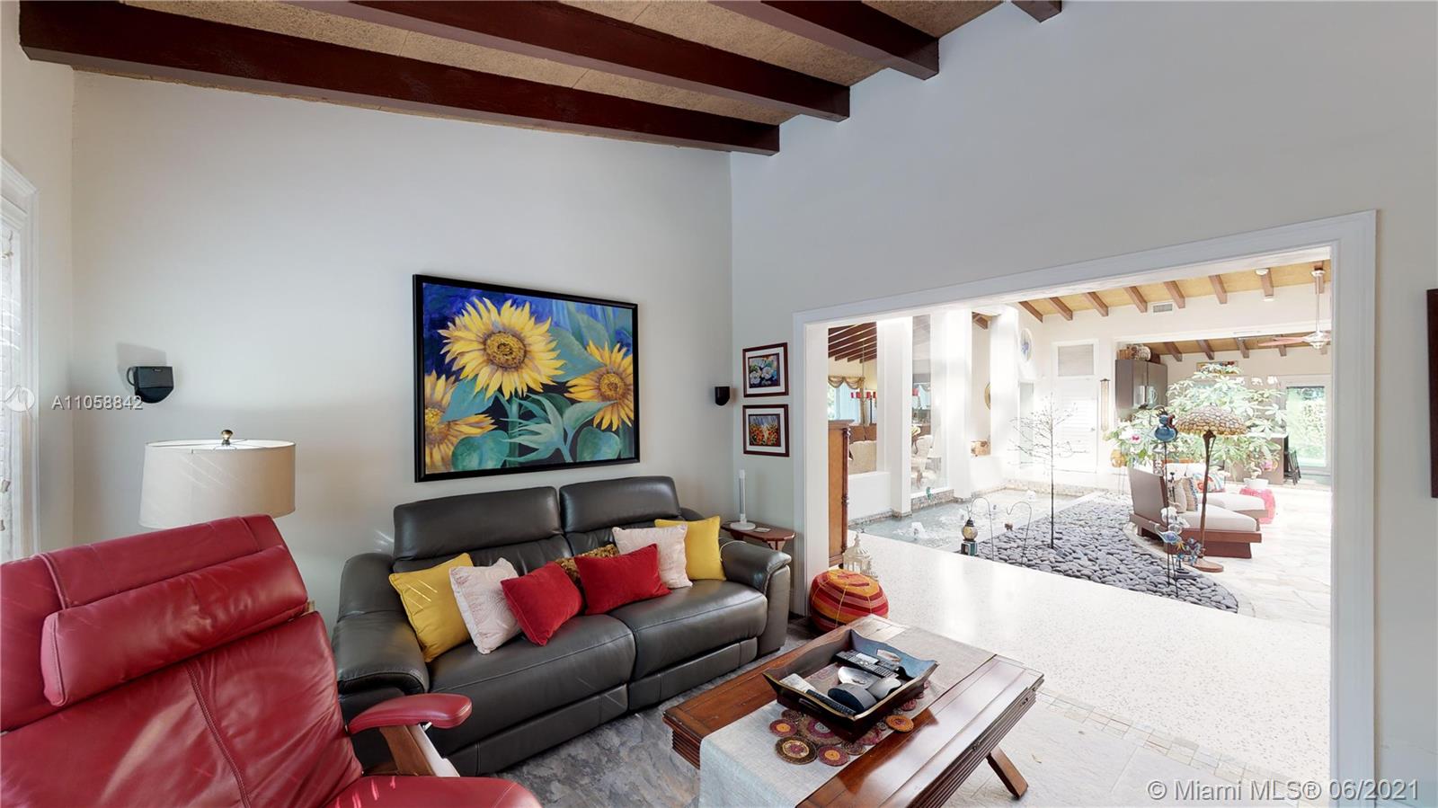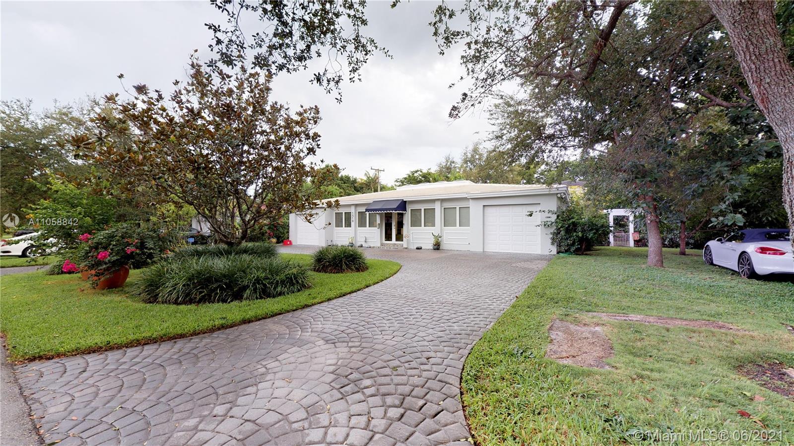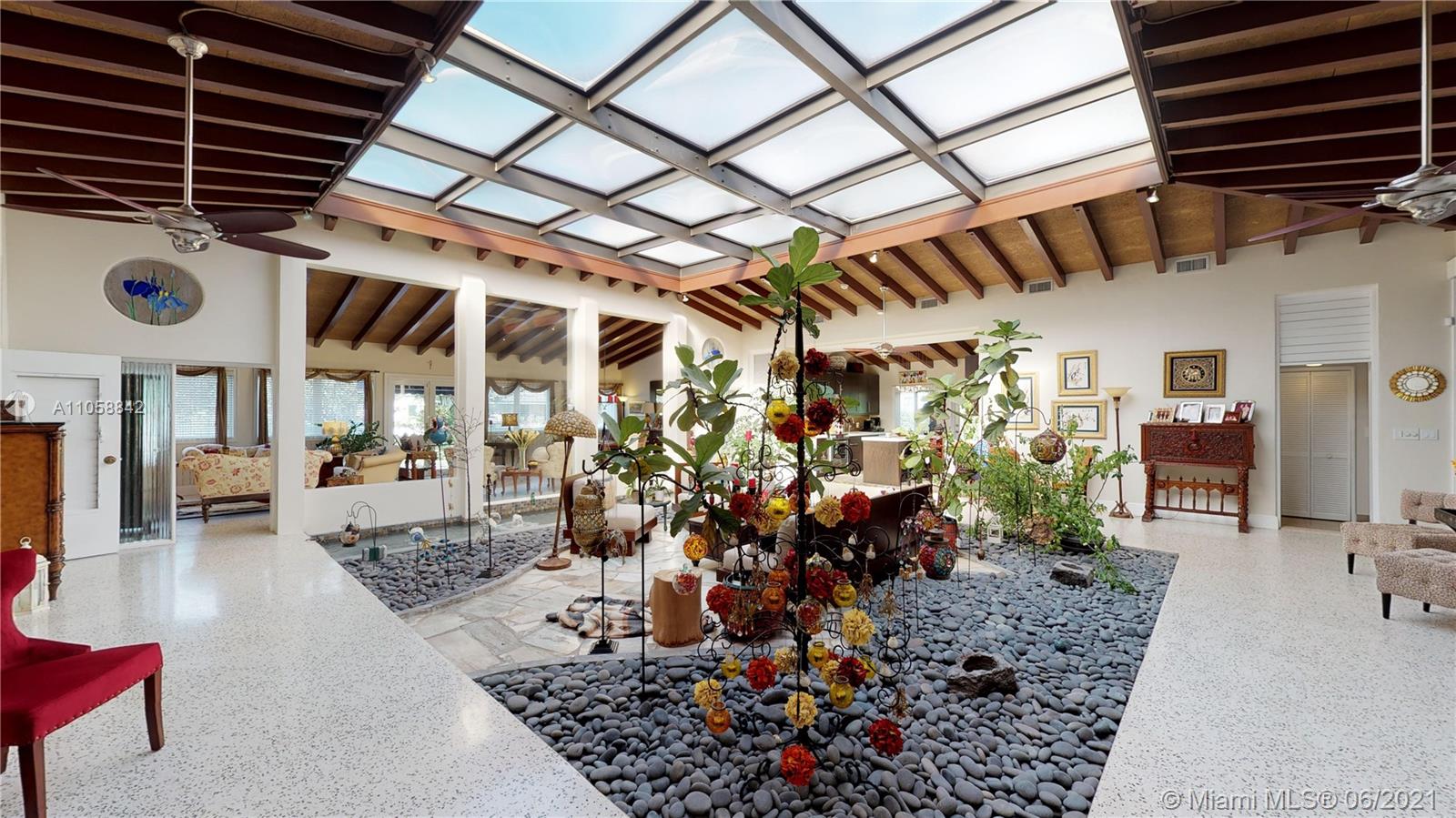Unique Coral Gables home, Designed by Mid Century modern architect Tony Sherman, the house surrounds a 20 x 25 Zen room with an in-ground fountain. Overall under air as per appraiser is 3683 SQ FT, 3 bedrooms, 2 bath plus converted 4th bedroom and bath. 1 Car garage, large circular driveway, art deco curved glass and stain glass windows, 10 ft. barn doors, impact windows and doors, custom made wood kitchen cabinet, laundry room and exposed beam ceiling. House is on a Coral Gables double lot 100x100 in the Country Club Estate neighborhood. Walking distant to Fairchild Elementary