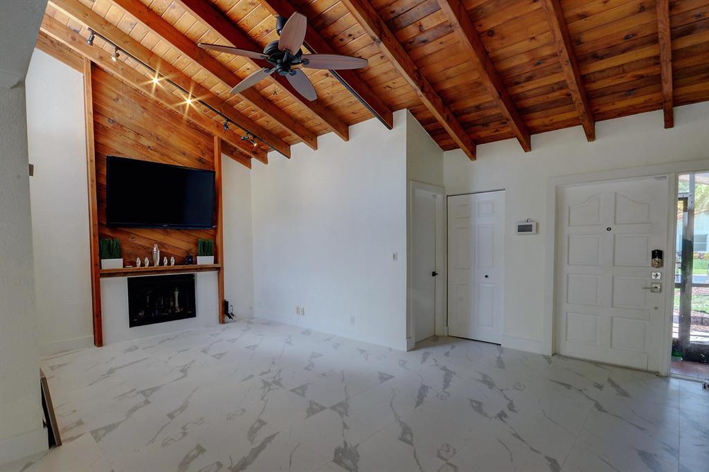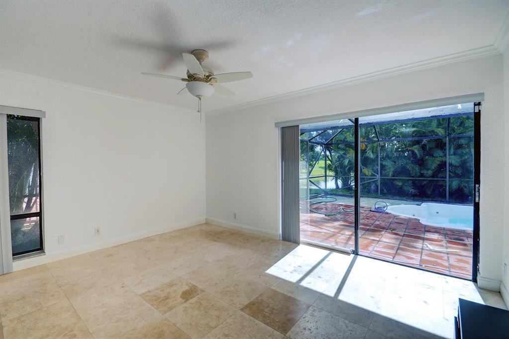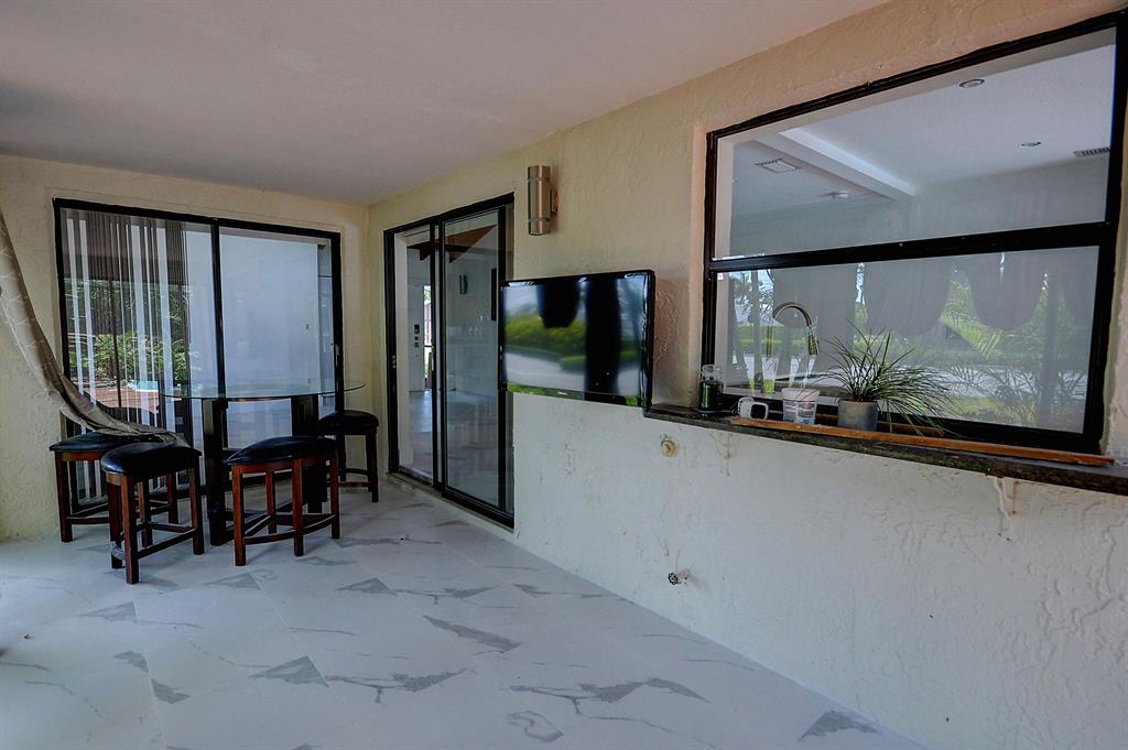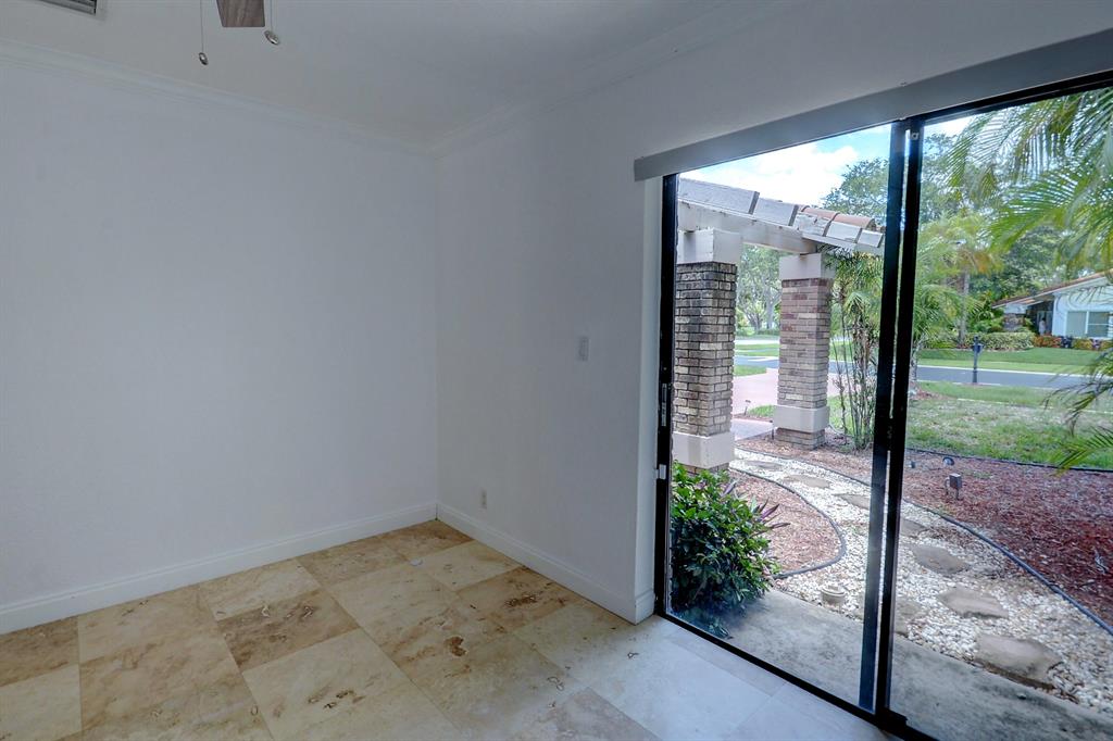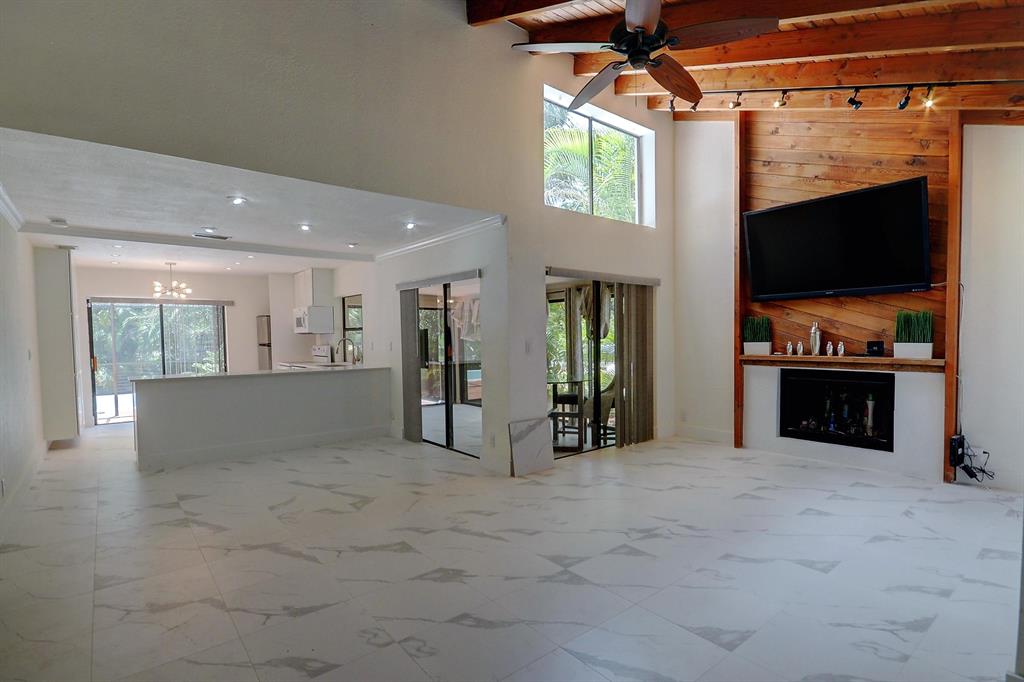 Light bright with new double sink and double dishwasher kitchen which has just been totally renovated with new cabinetry and quartz countertops. The modern all white kitchen coordinates perfectly with the new porcelain tile which runs through to the fully enclosed Florida room that can be use for additional living space. This is the closest home to the front of the community and a very very short walk to worship. Also, it's move in ready! Boca Greens is a gated community of 586 homes as well as being the home of the Boca Greens County Club. All residents can play the course on a pay for play basis. No membership is required and the low monthly fees include a premium cable tv package with HBO, HBO Max, Showtime and fast fiber internet.