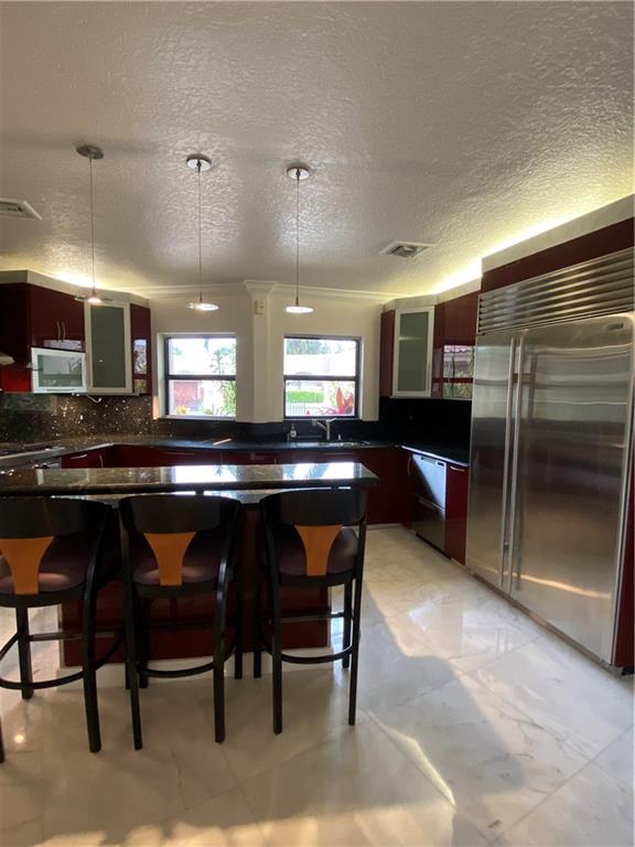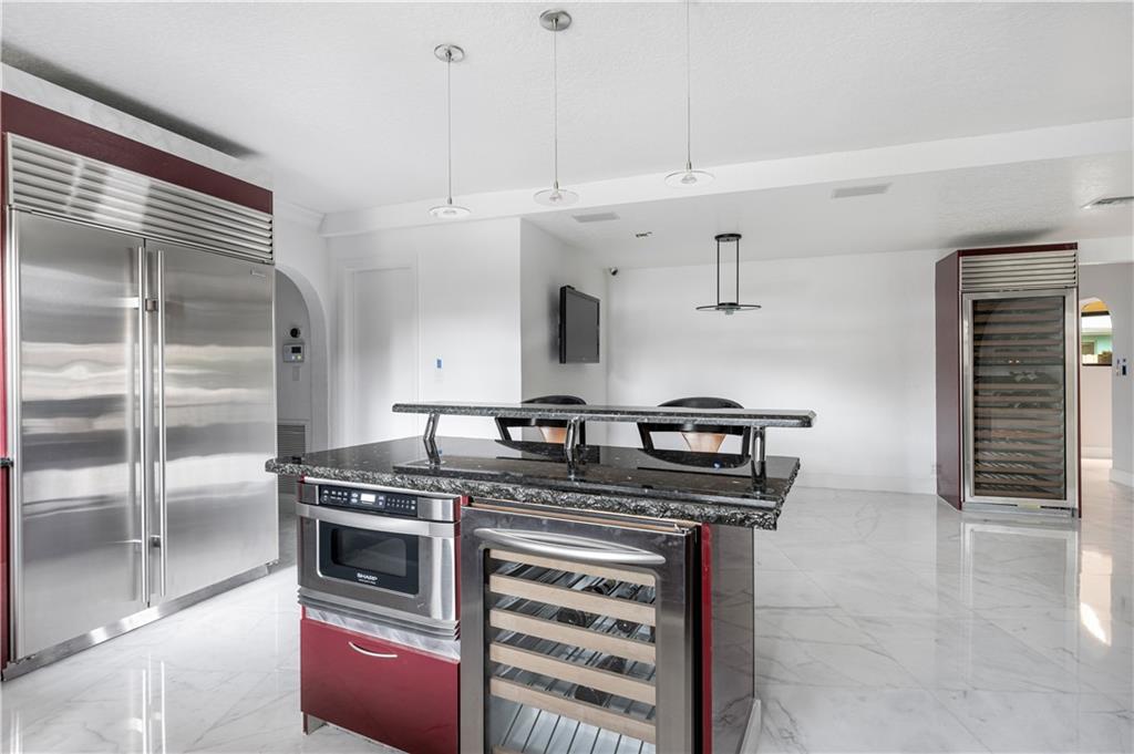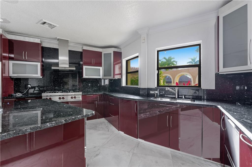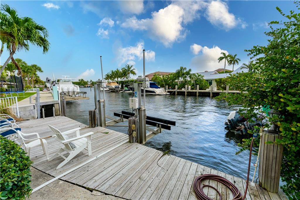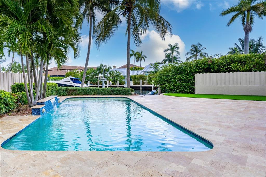 Was a Lease to Own. Back on the market. Just off Lake Santa Barbara, with easy access to the Intracoastal and Ocean on deep water with no fixed bridges, sits this 3 bedroom 3.5 bath home with a large salt water pool, full cabana bath and boat lift. The marble and granite floors lend luxury to the gourmet kitchen with Wolfe and Sub Zero appliances and a large pantry. Split bedrooms, primary bedroom with all granite bathroom/private sauna and huge walk-in closet. Multi-tiered living room with wet bar overlooking the pool area. Updated Electric. Impact doors for the primary bedroom sliding door, cabana bath door and window on garage on order. New pergola and circular driveway with 3 parking spaces. 43 feet of water frontage.
