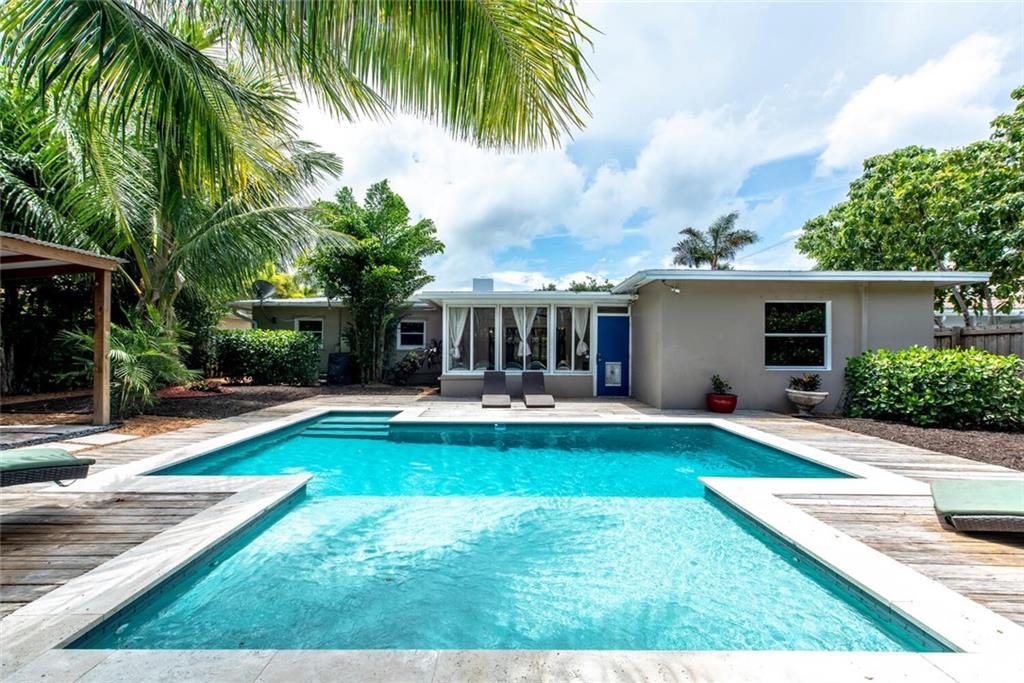Tucked away in the Lush, Tropical Poinsettia Heights River neighborhood, sits this wonderful pool home. You are greeted by Royal Poinciana and Jacaranda trees in the front yard, setting the tone for the lush tropical landscape and pool area in the rear of this home. Features include a heated, salt-water pool, landscape lighting, Wood Burning Fireplace, Gazebo, Fire Pit, two zones of AC, office area and three season porch with exposed beams. Also included is a whole house generator, new water heater, new washer/dryer. Bonus - there is natural gas available on the street! Truly a gem just waiting for you to make it your own.