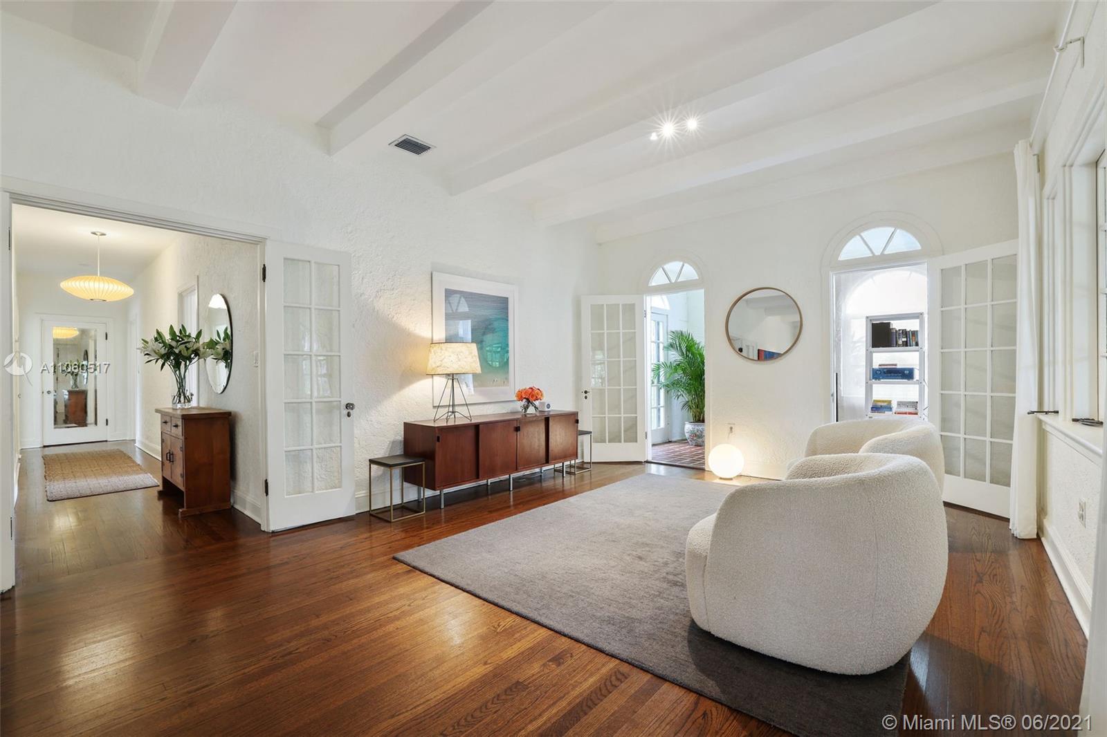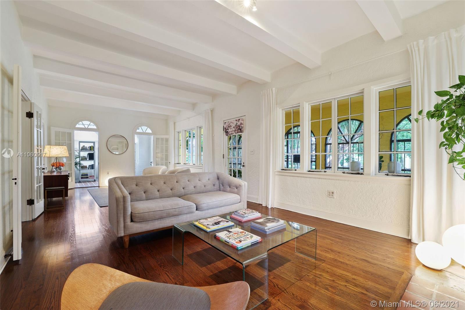 Stunning Old Spanish home with true charm on a beautiful tree lined street. Tastefully remodeled with modern touches that blend with the warmth of its original design, with beautiful arches, volume ceilings, and gorgeous hardwood flooring. Large screened porch provides the perfect outdoor family room. The living room is grand with a charming fireplace & beautiful casement windows, opening to a sun-filled reading room or home office. A separate dining room enters into a spacious kitchen with pantry. Bathrooms were recently remodeled. Spacious garage and partial impact glass windows. Located in one of the most desired areas in Coral Gables and walking distance to restaurants, parks & schools.