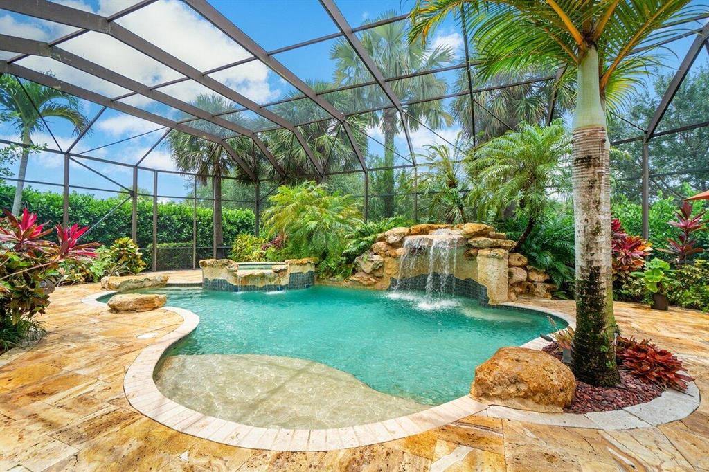 Stunning expanded Grenada model located in the prestigious Parkland Golf and Country Club. Situated on the largest corner lot of a cul-de-sac, with a huge side yard. This 4 bedroom, 3.2 bath home with an extended loft, feels like a private oasis. The screened in resort style backyard features a rock waterfall, summer kitchen, custom heated pool/spa and custom lighting. Elegantly decorated, this home has rich hardwood details, a custom kitchen which includes two sub zero, dual temperature, 300 bottle wine storage units, intricate crown moldings, coffered ceilings and a sonos music system throughout the home. The sophisticated built in office is surrounded by expansive windows and is drenched in natural sunlight. Hurricane impact windows/doors. This home is turnkey and truly one-of-a-kind.