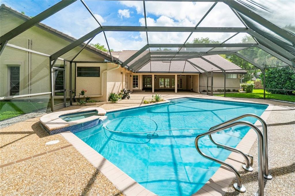 Situated within a beautiful and exclusive community. Behind the idyllic guard-gated entry, you will find an intimate community featuring tree-canopied streets and some of Coral Springs' finest homes. This true 6 bedroom home features a huge island kitchen, vaulted wood ceilings, very large living areas, huge screened porch, large pool with spa, fireplace, remote-controlled electric storm shutters. The expansive master suite features a second room which is perfect for an office, nursery, library, or gym. This is a wonderful opportunity.